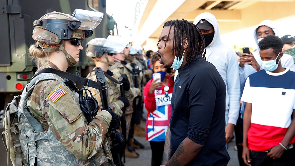 Hundreds of protesters were still out in Minneapolis, Minnesota, where Floyd died in police custody on Monday, amid heavy police and US National Guard presence as an 8pm curfew began on Saturday.