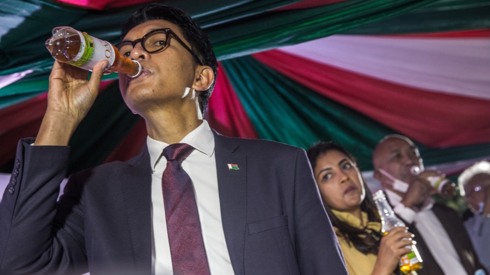 Last month, Madagascar’s President Andry Rajoelina launched the remedy at a news conference, drinking from a sleekly-branded bottle filled with an amber liquid which he said had already cured two people.