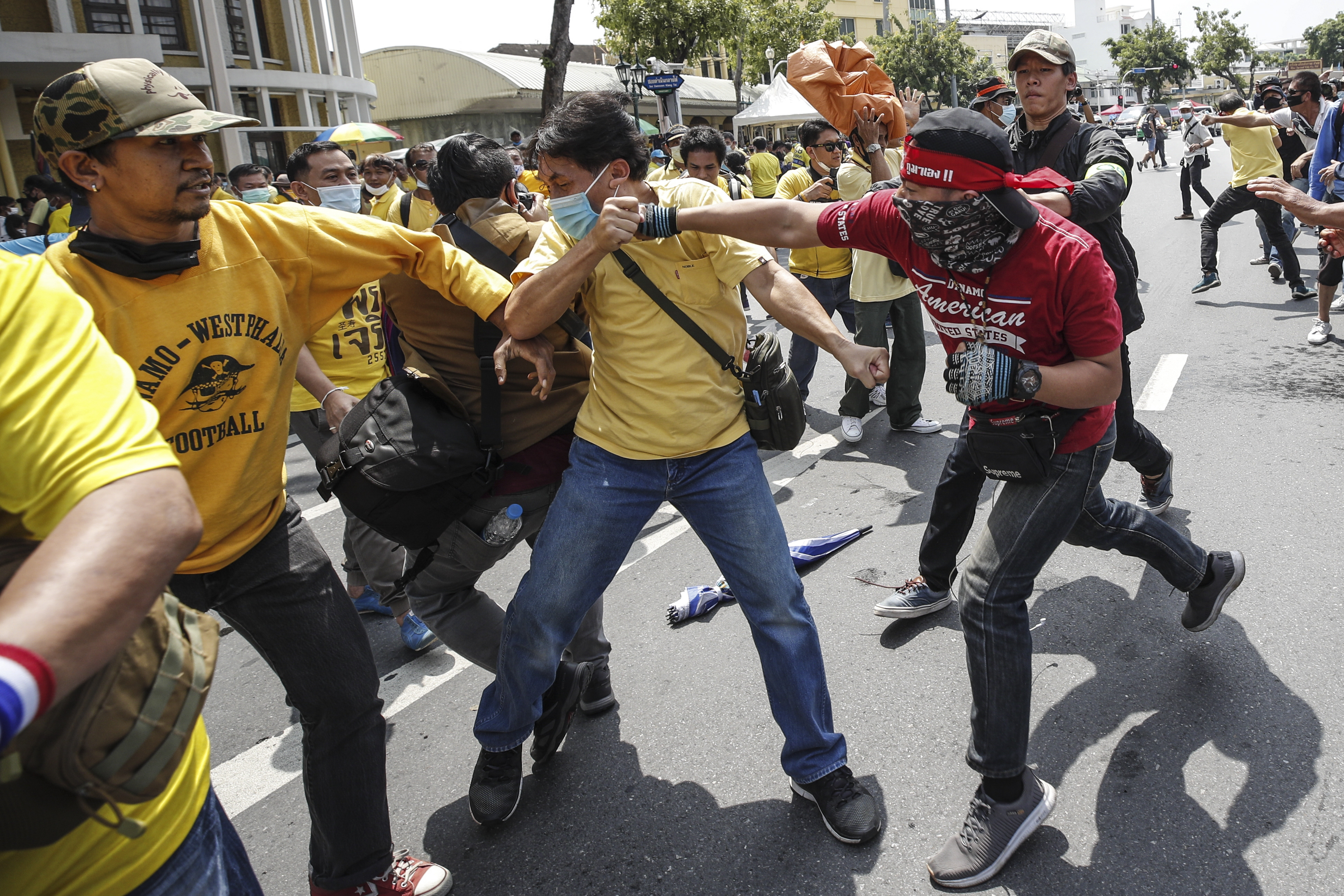 Clashes also broke out between pro-democracy protesters and supporters of the Thai monarchy on Wednesday.