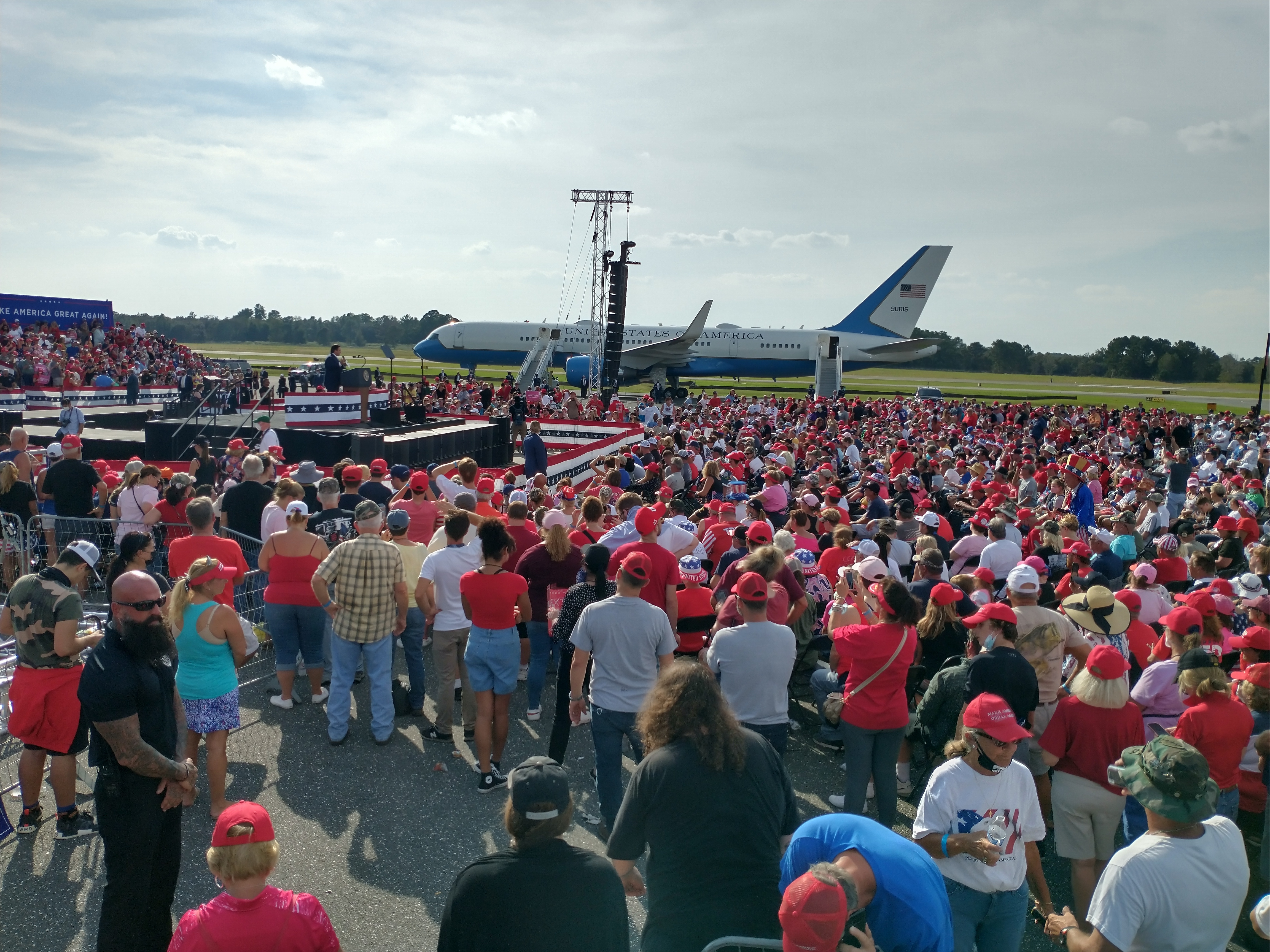 “Our economy is setting records,” he told the crowd.