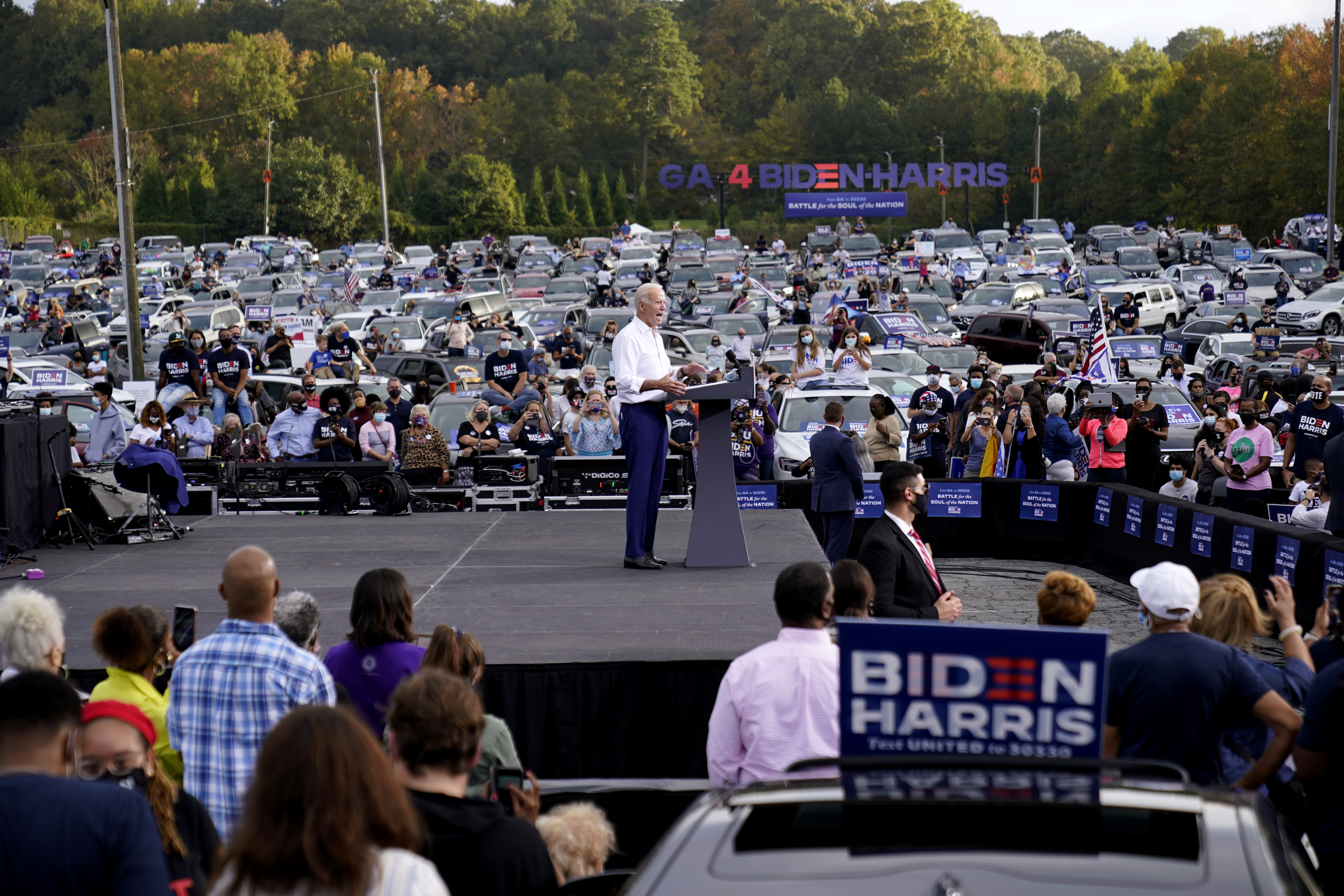Meanwhile, Trump has been drawing large, enthusiastic crowds of several thousand supporters at outdoor airport rallies he is holding in key battleground states, saying it presages a “red wave” of Republican support on Election Day.