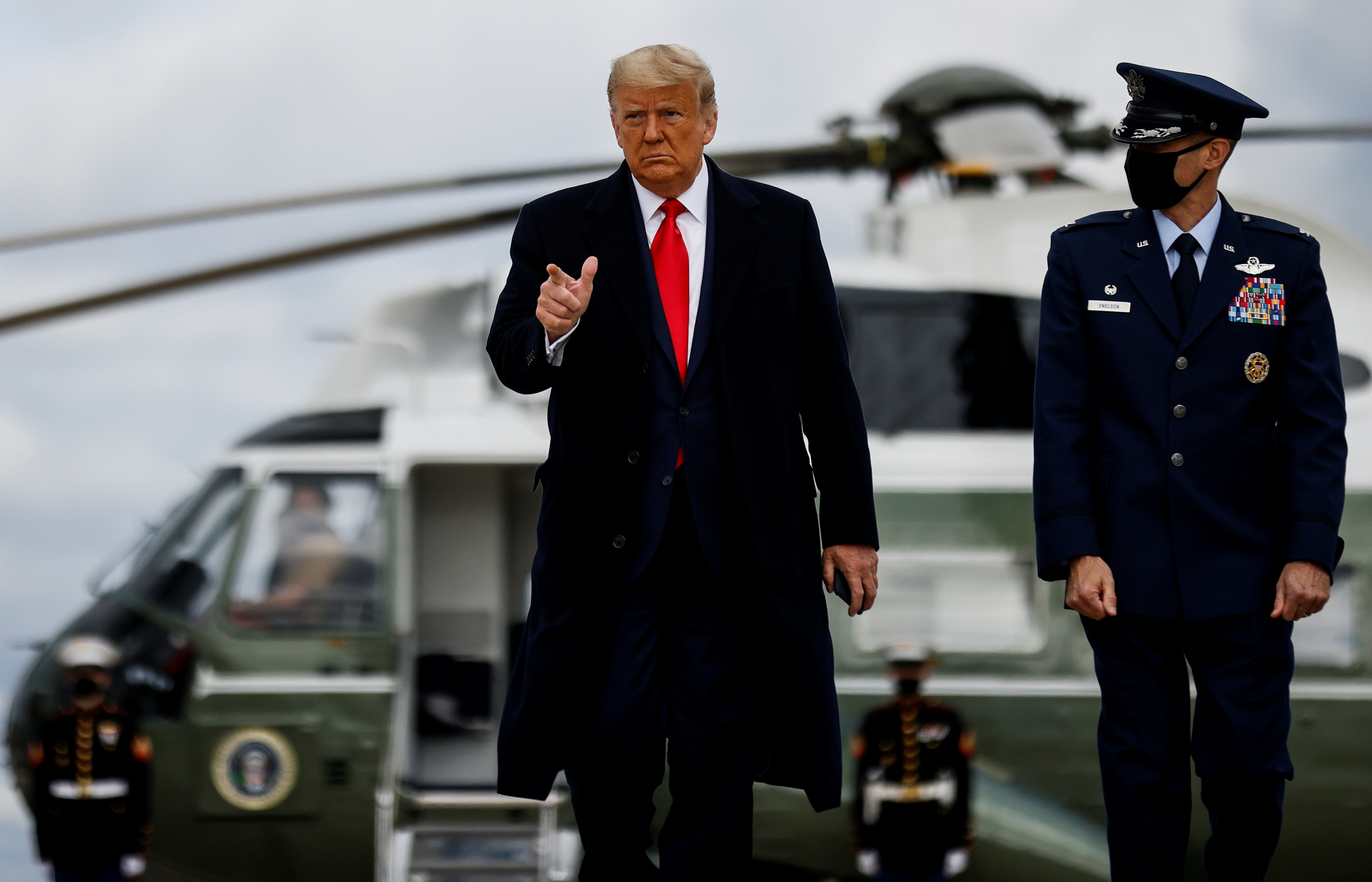 Trump departs White House, addresses reporters