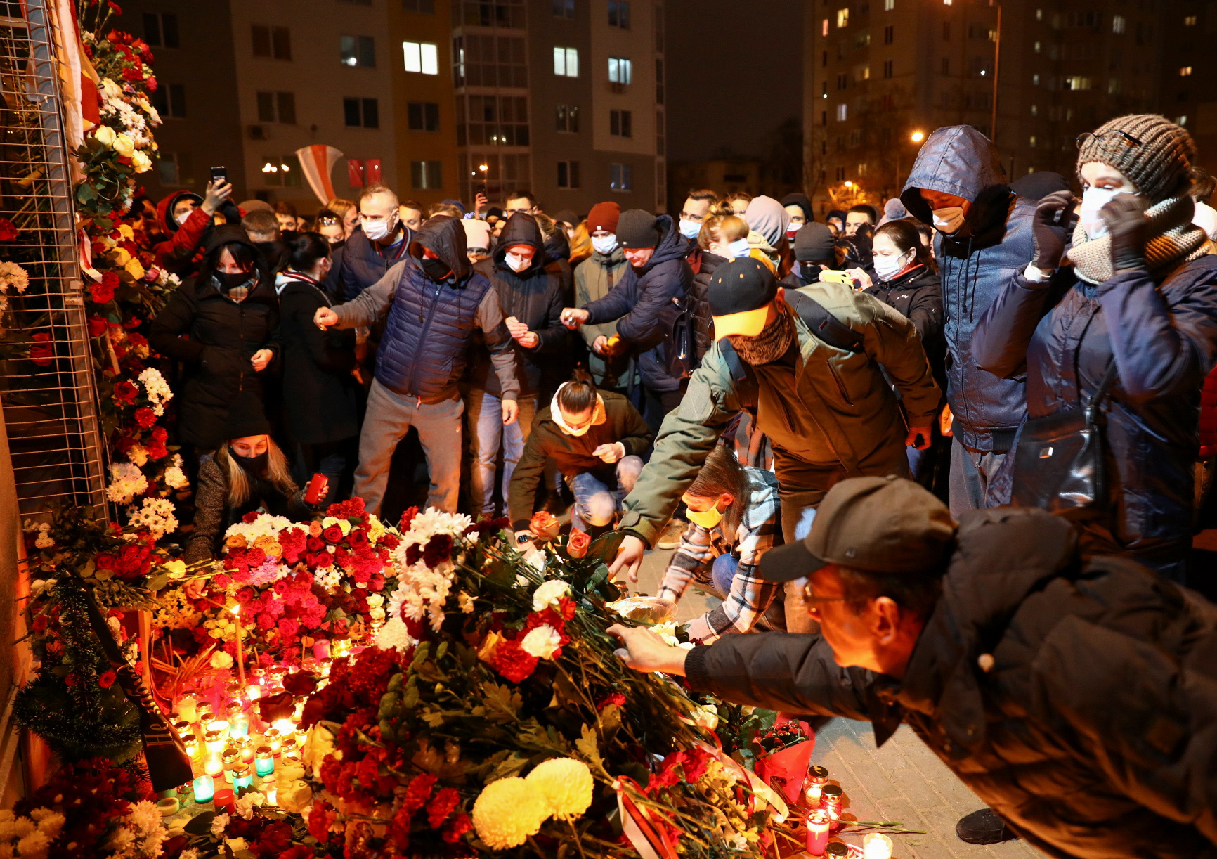Protesters carrying flowers and candles formed human chains of solidarity on Friday to honour Bondarenko.