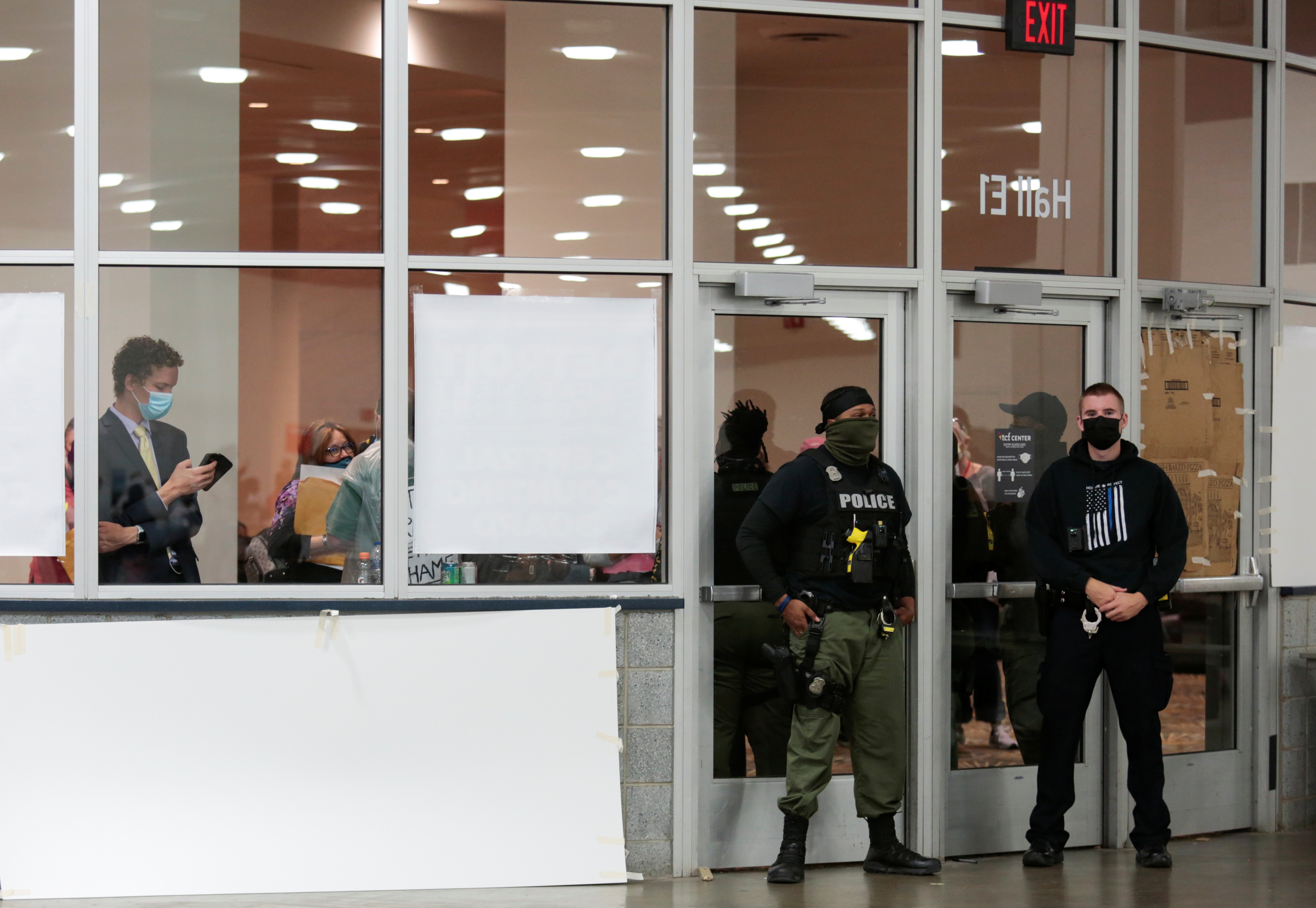 Misinformation circulated on social media that officials were hiding the ballot count. A mob of angry people gathered outside the glass doors. “I literally saw the windows shaking,” Gaston said. “People were hitting the windows … I actually saw a man climb the windows.”