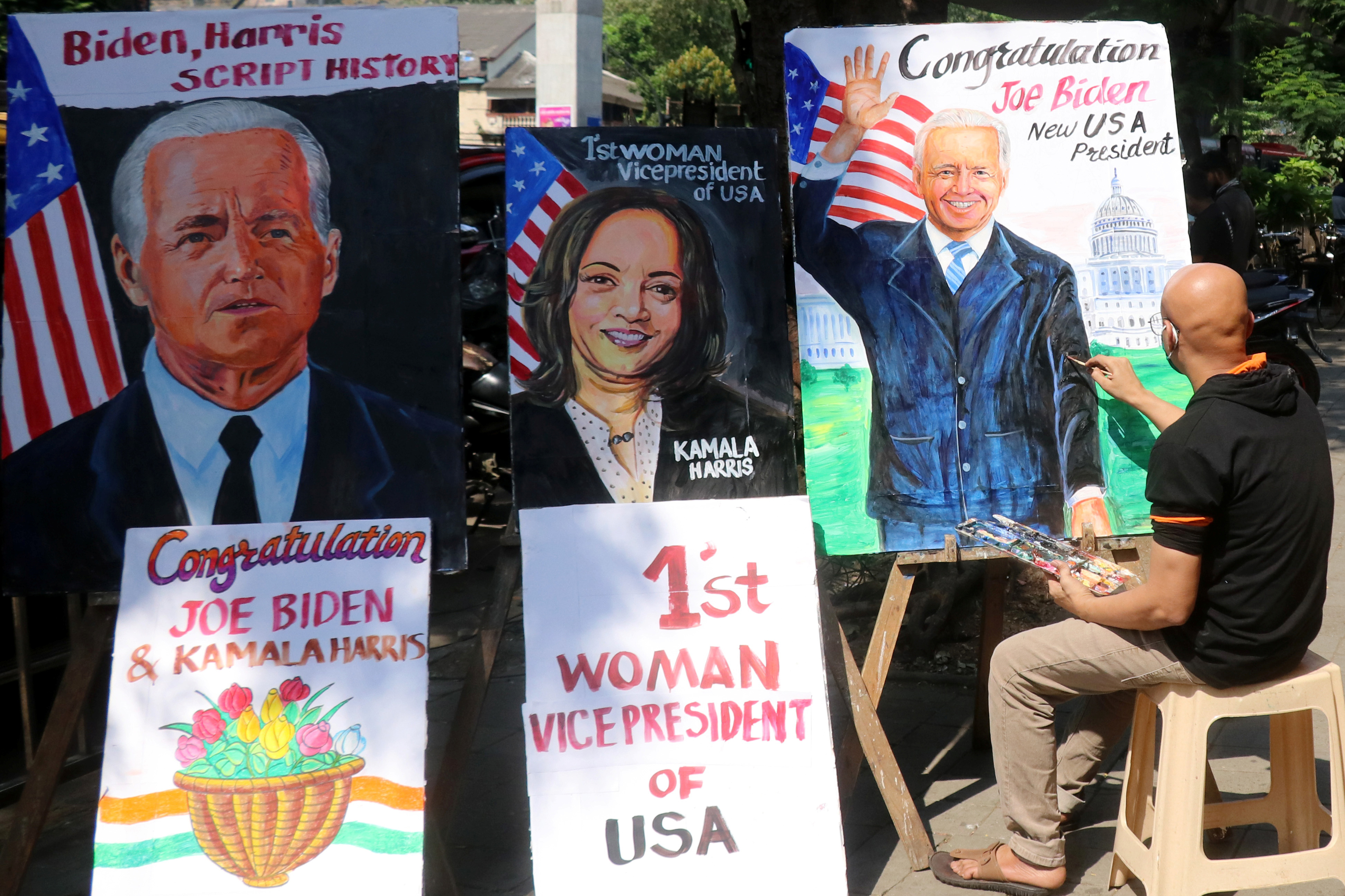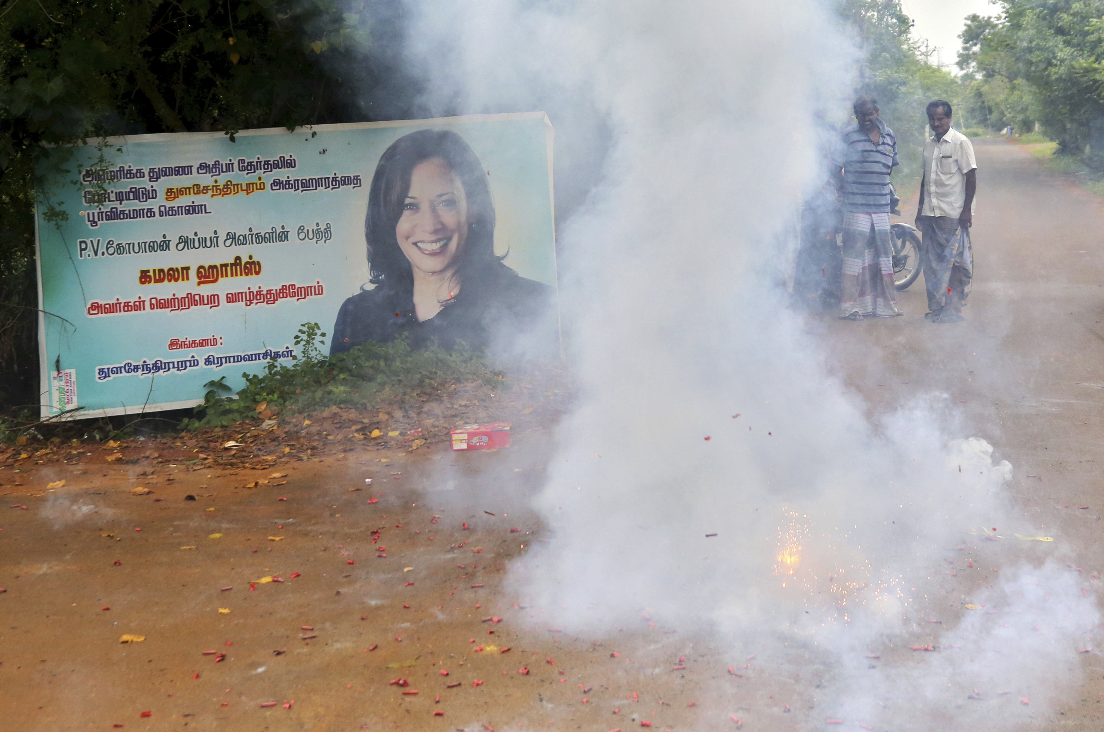 Harris’ victory sparked celebrations in her maternal grandfather’s hometown in the southern state of Tamil Nadu.