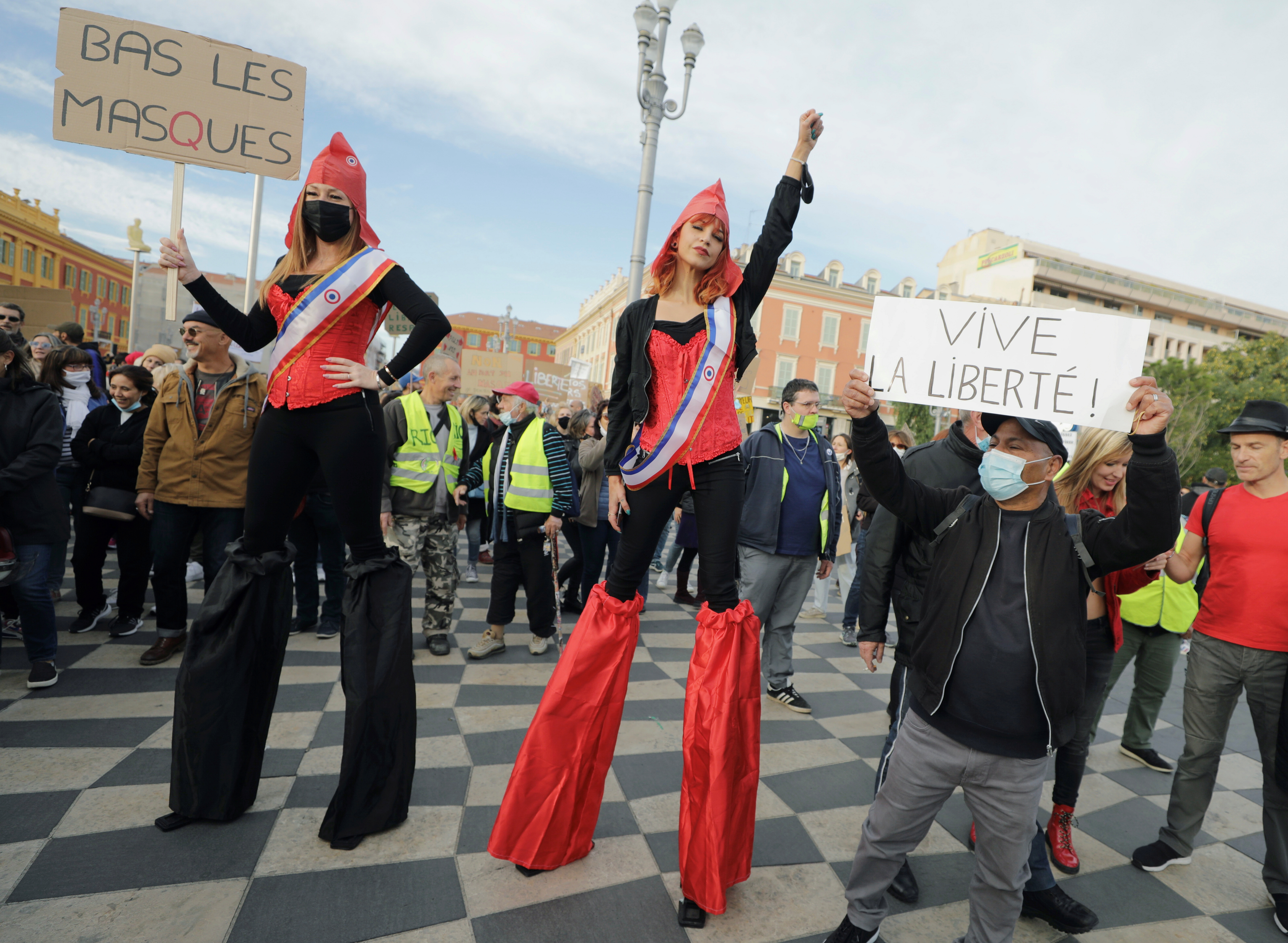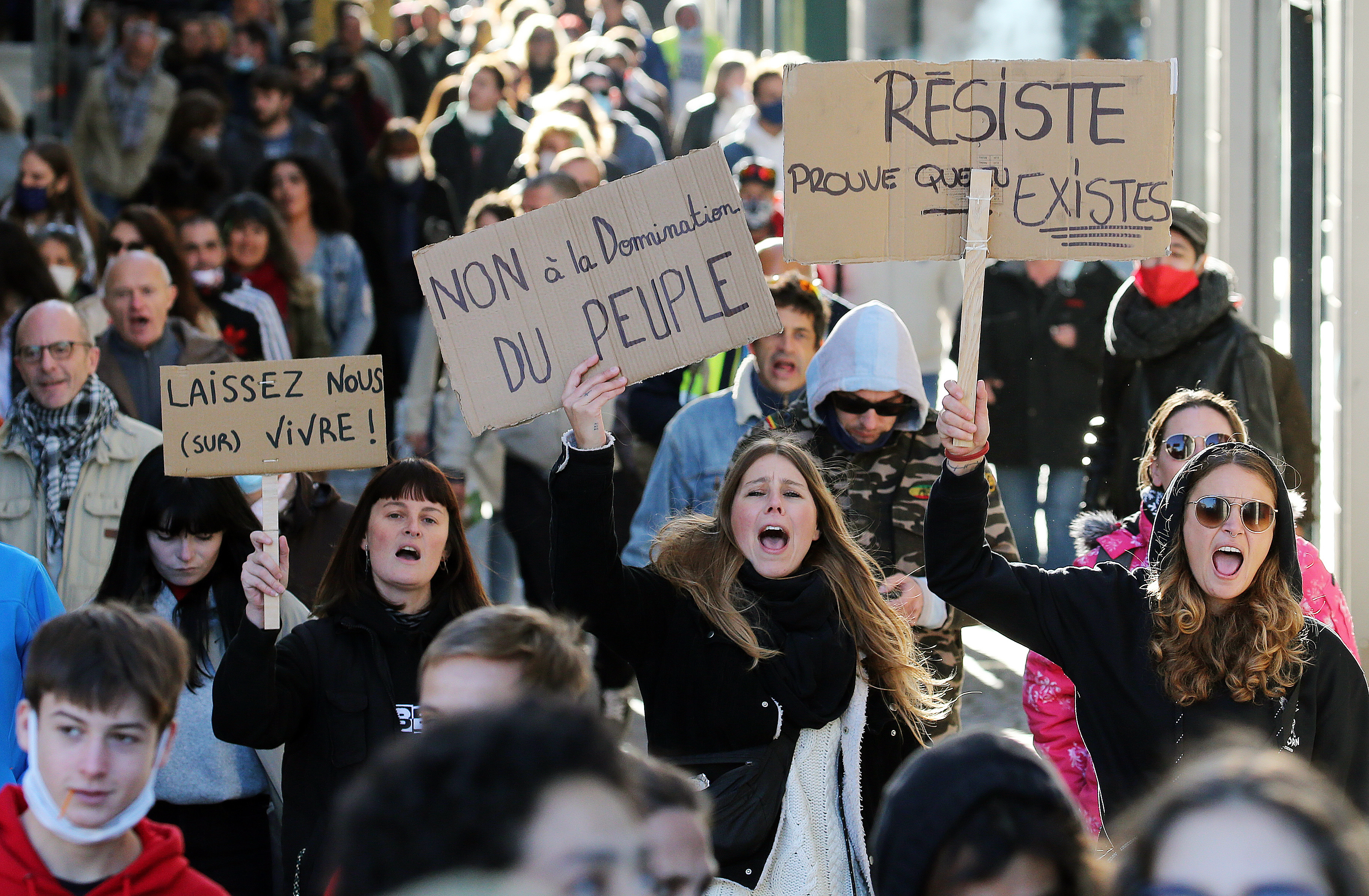 In the northern city of Lille, around 1,000 demonstrators turned out, one of whom carried an English-language sign that said “Orwell was right” in a reference to the dystopian novel, 1984.
