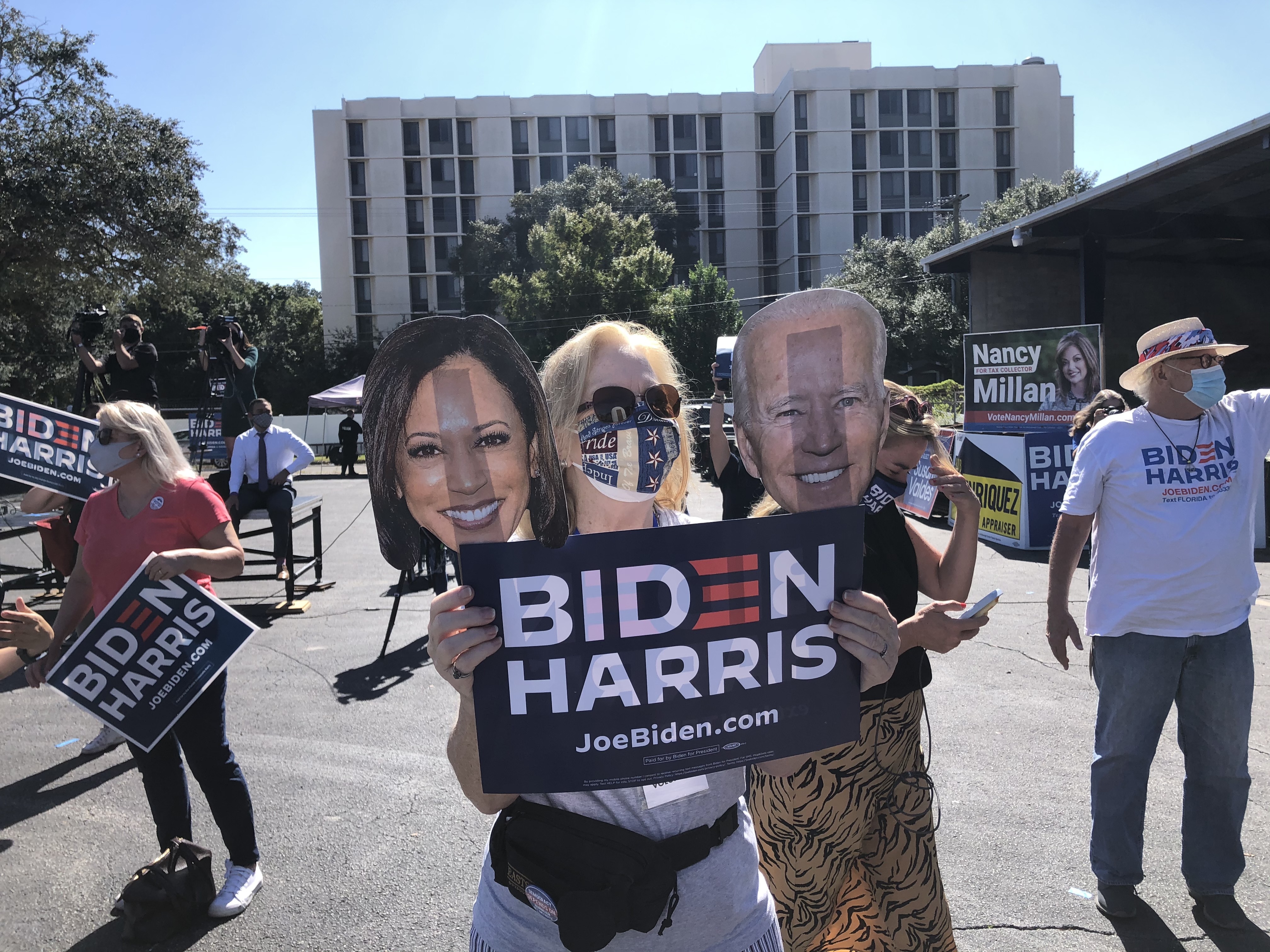 The appearance outside “Casa Biden”, an independent volunteer office where people have spent months drumming up support for Biden in an area with large Cuban and Puerto Rican populations, was scheduled at the 11th hour to try to increase voter turnout.