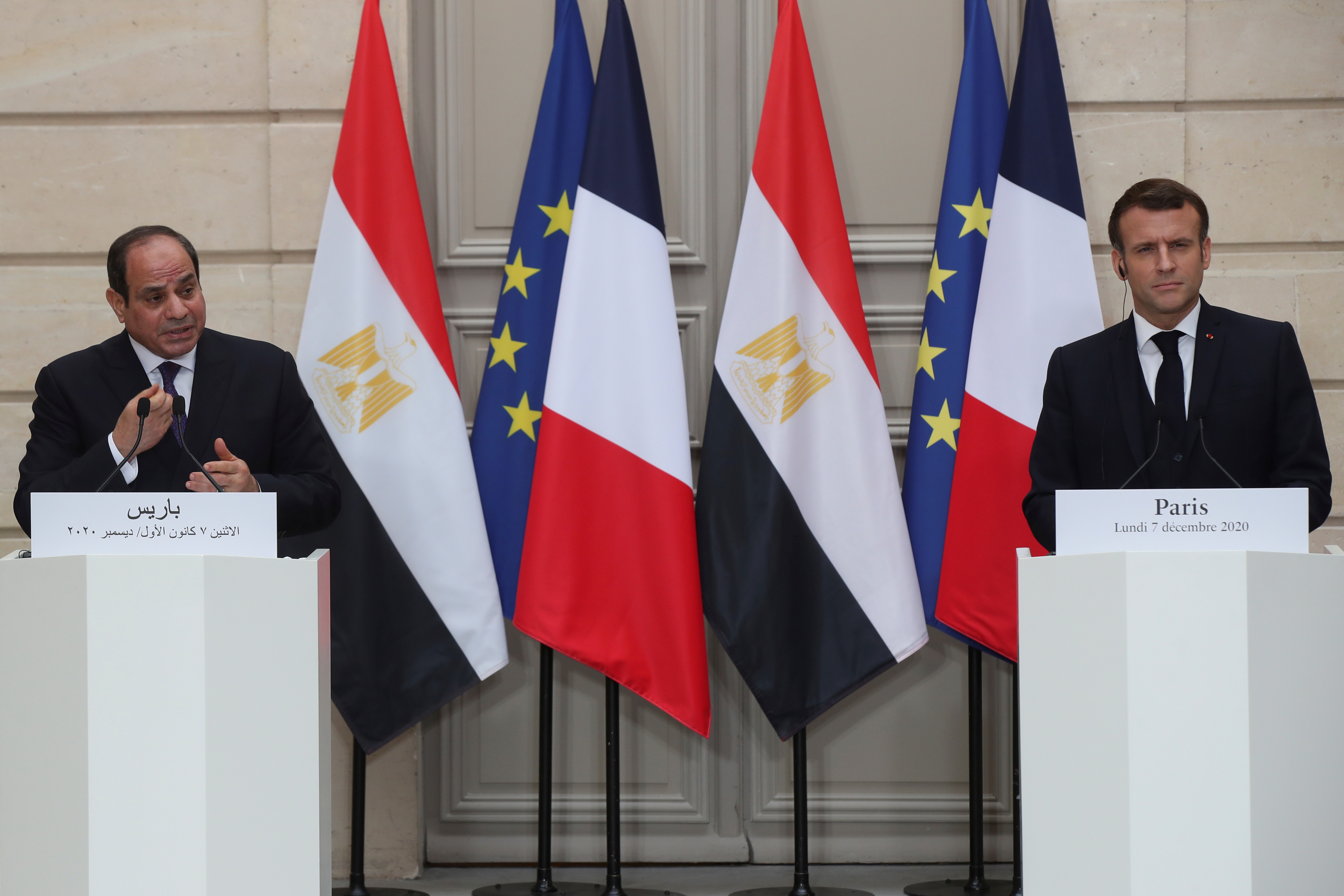 Activists who had warned Macron not to roll out the red carpet for el-Sisi were already enraged by the French leader’s refusal to condition deepening defence and trade ties with Egypt on its respect for human rights.