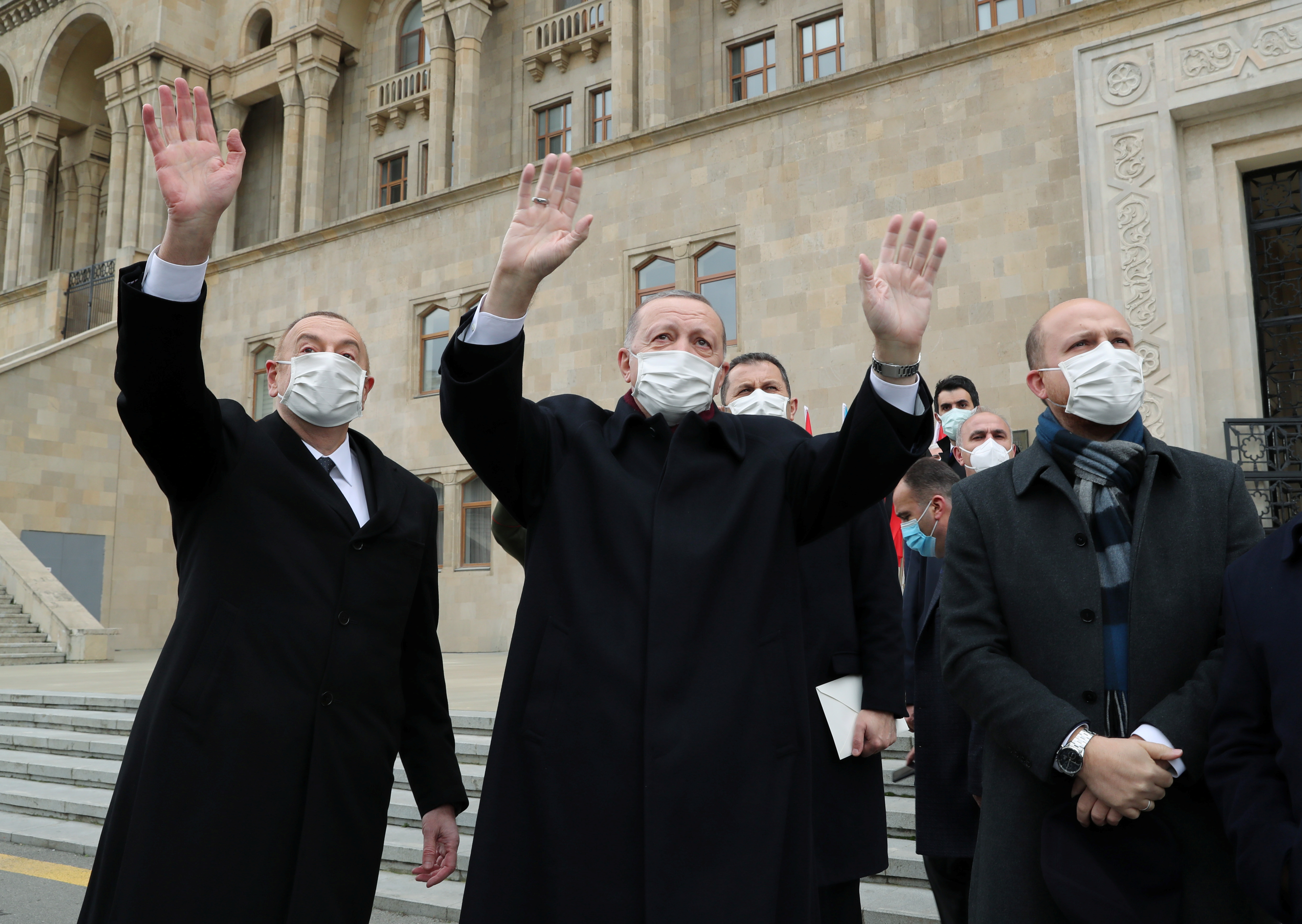 The Turkish leader was in the Azeri capital Baku on Thursday to participate in a military parade marking Azerbaijan’s victory over Armenia in a 44-day war over the Nagorno-Karabakh enclave that left thousands dead.