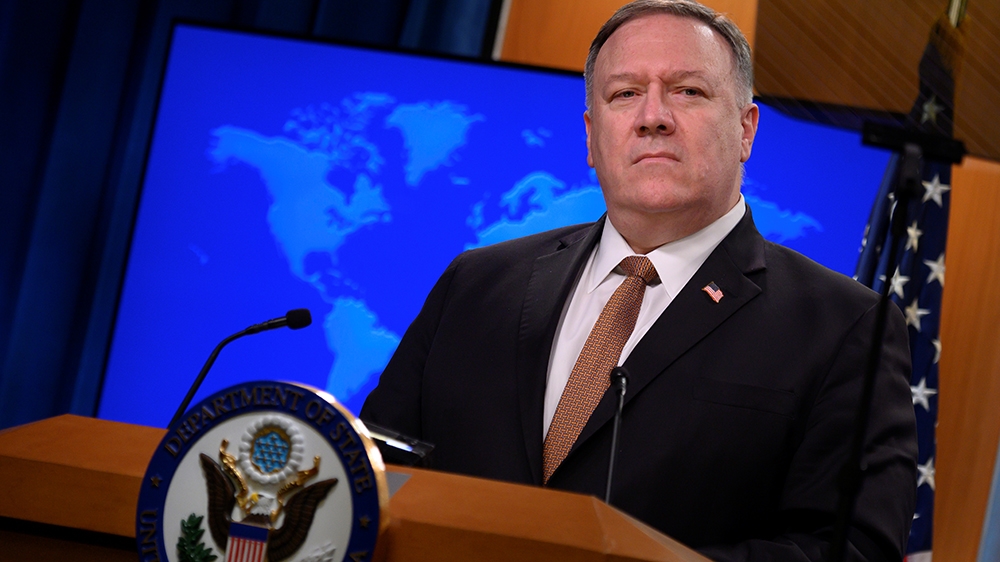 United States Secretary of State Mike Pompeo attends a news conference at the State Department in Washington, DC, the US [Andrew Caballero-Reynolds/Reuters]