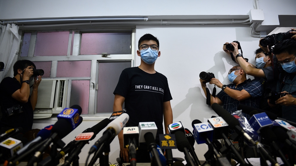 Wong, who was dressed in a black T-shirt emblazoned with the words “You can’t kill us all”, told the media that Hong Kong’s new national security was a “legal weapon used against dissidents” and the disqualification of pro-democracy candidates the most “scandalous election fraud in Hong Kong history”.
