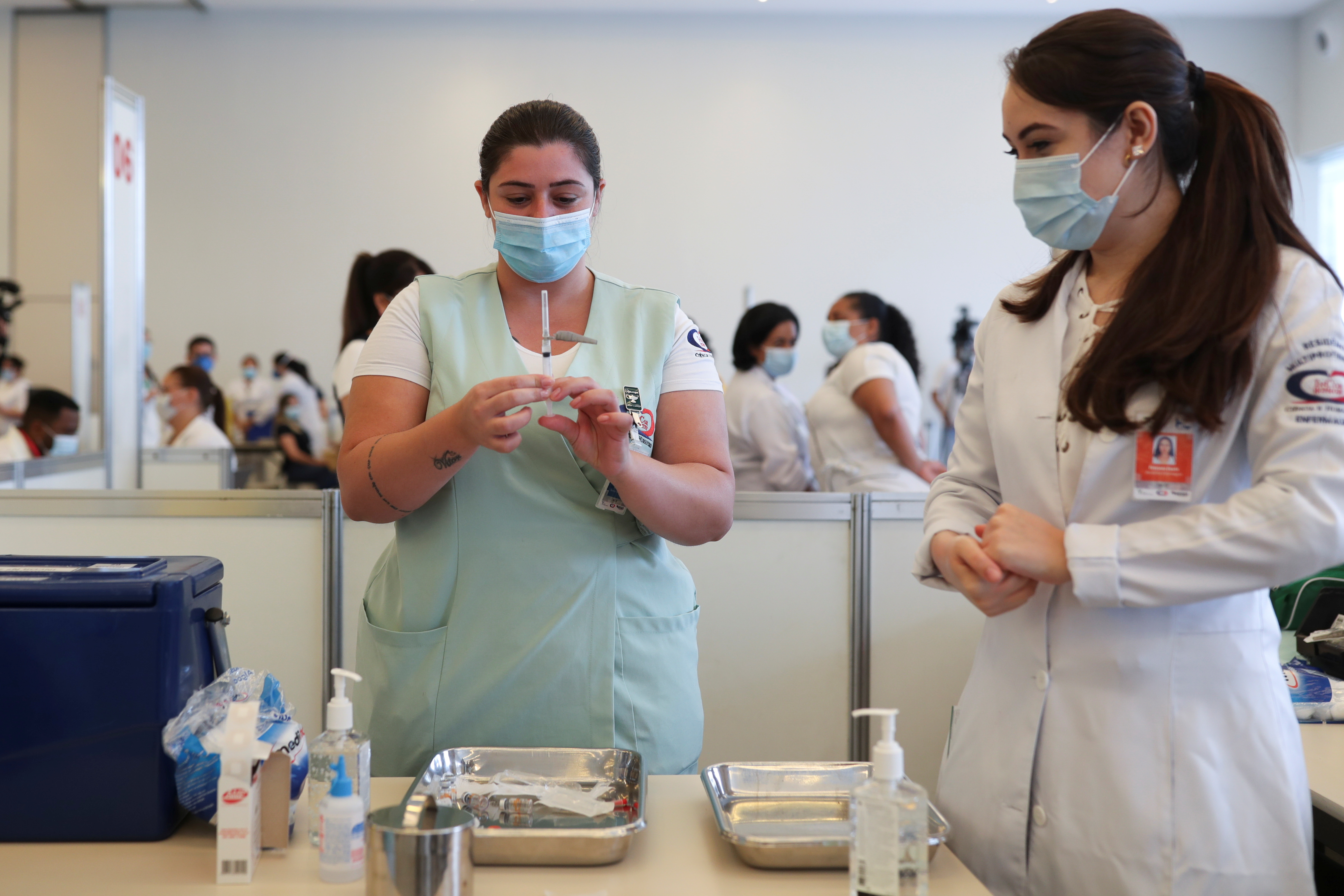Minutes after federal health agency Anvisa approved the Sinovac vaccine on Sunday, Monica Calazans, a 54-year-old nurse in Sao Paulo, became the first person to be inoculated in the country, as Sao Paulo Governor Joao Doria looked on.