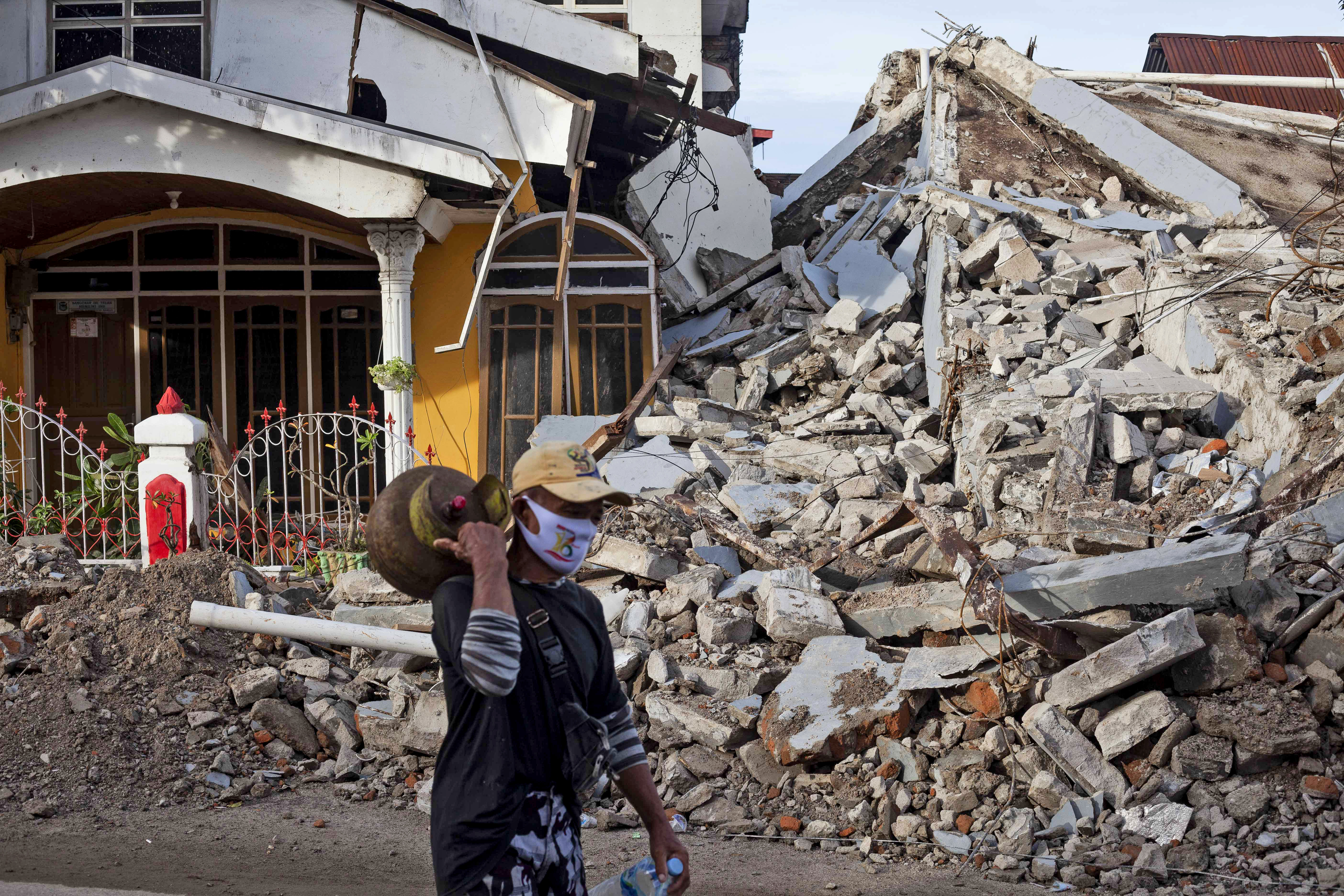 In the seaside city of Mamuju, buildings were reduced to a tangled mass of twisted metal and concrete.