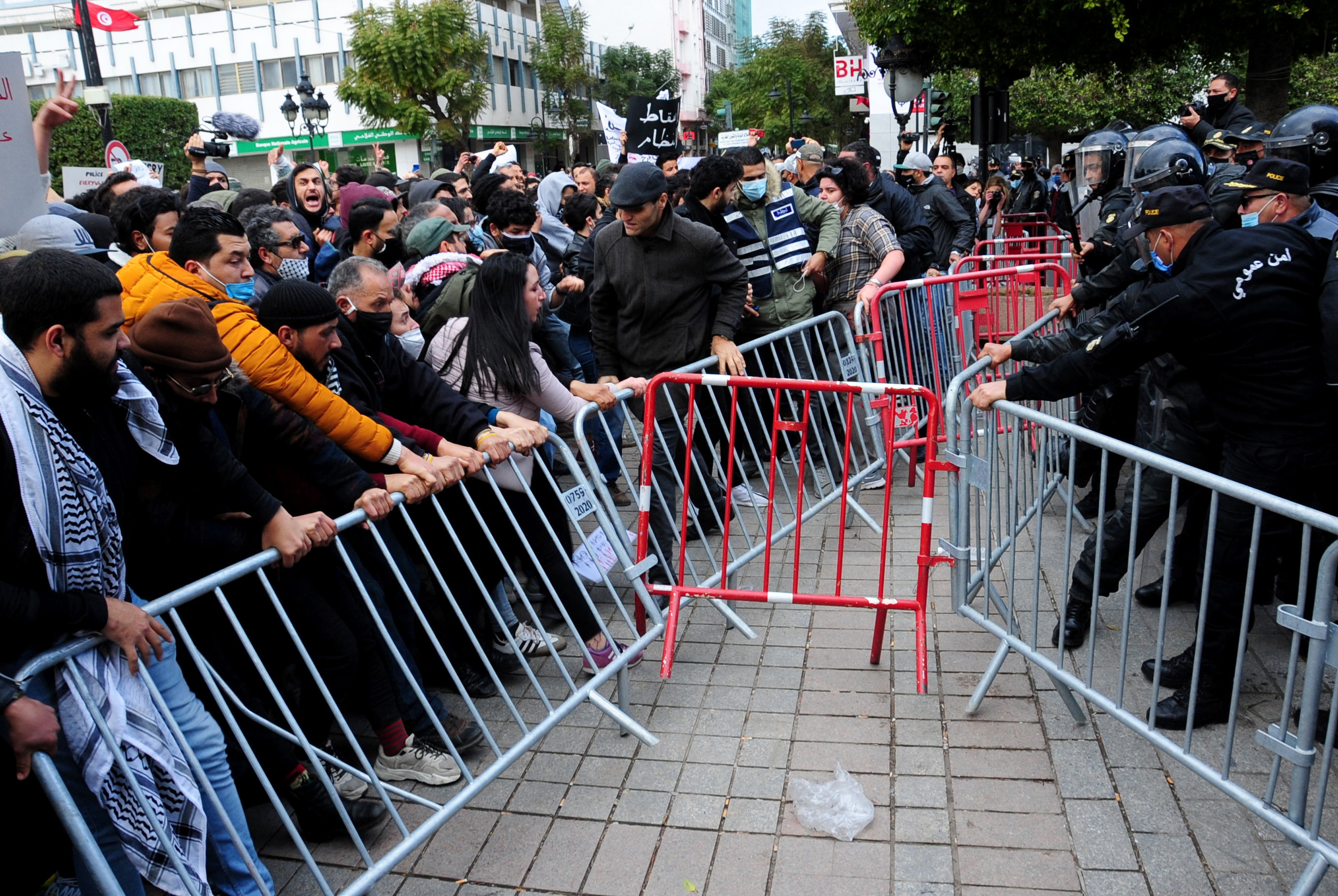 In the capital, police placed barricades along Habib Bourguiba Avenue, the stately tree-lined thoroughfare running from the sea up to the old city of Tunis, in a bid to stop the protesters gathering.