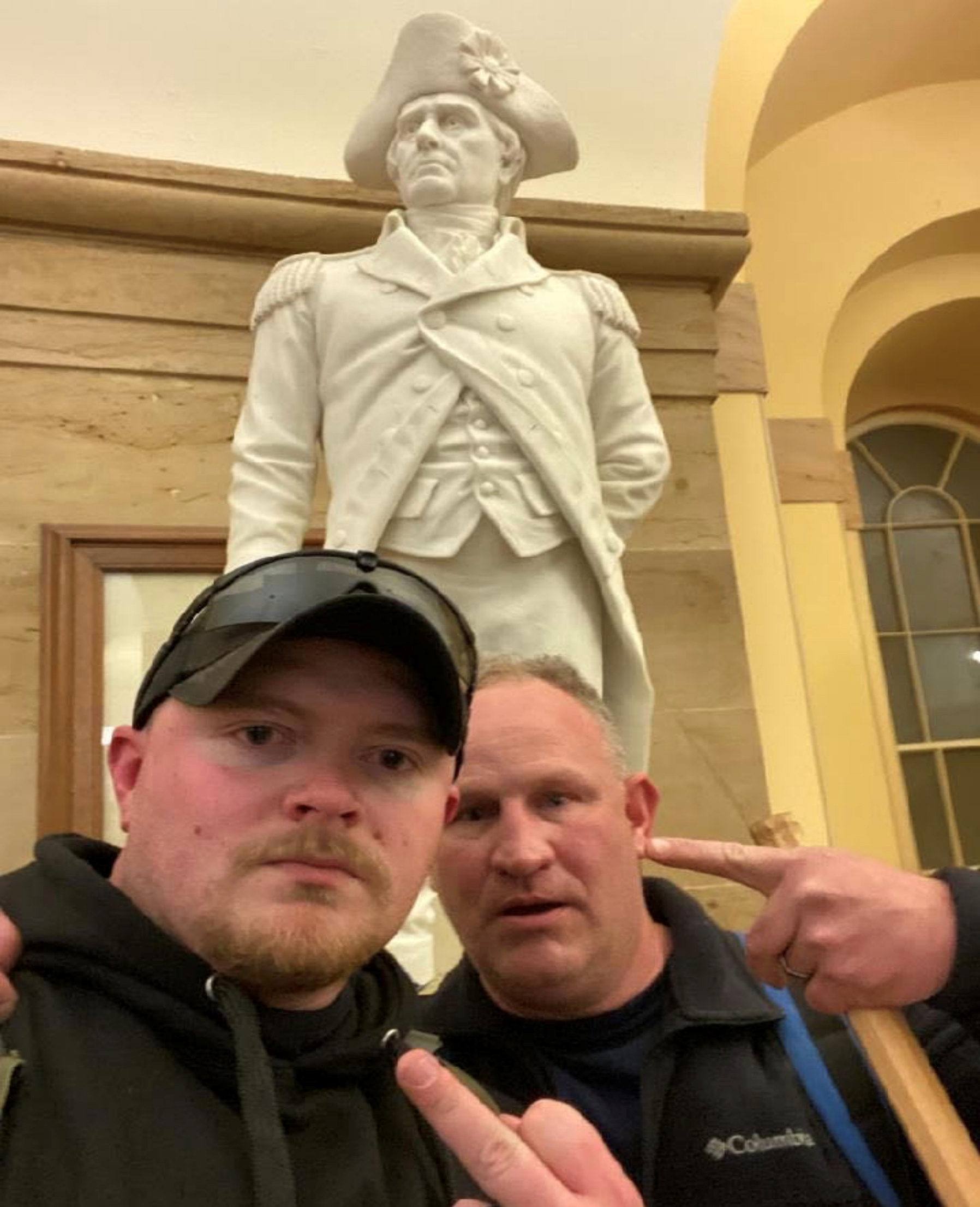 The men have claimed they were allowed inside the Capitol by police and committed no violence. They were identified after a photo showing the police officers inside the Capitol was widely shared.