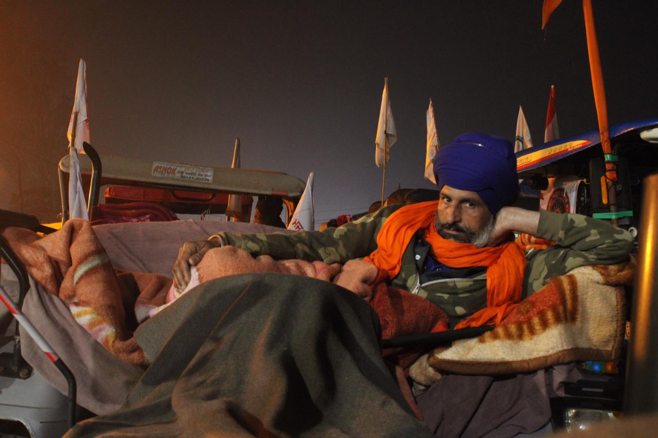 Gurbachan Singh, 73, from Amritsar in Punjab state who owns 12 acres (4.8 hectares) of land, slept on a tractor for the entire night, braving the freezing cold, so that he can take a lead in the tractor rally.