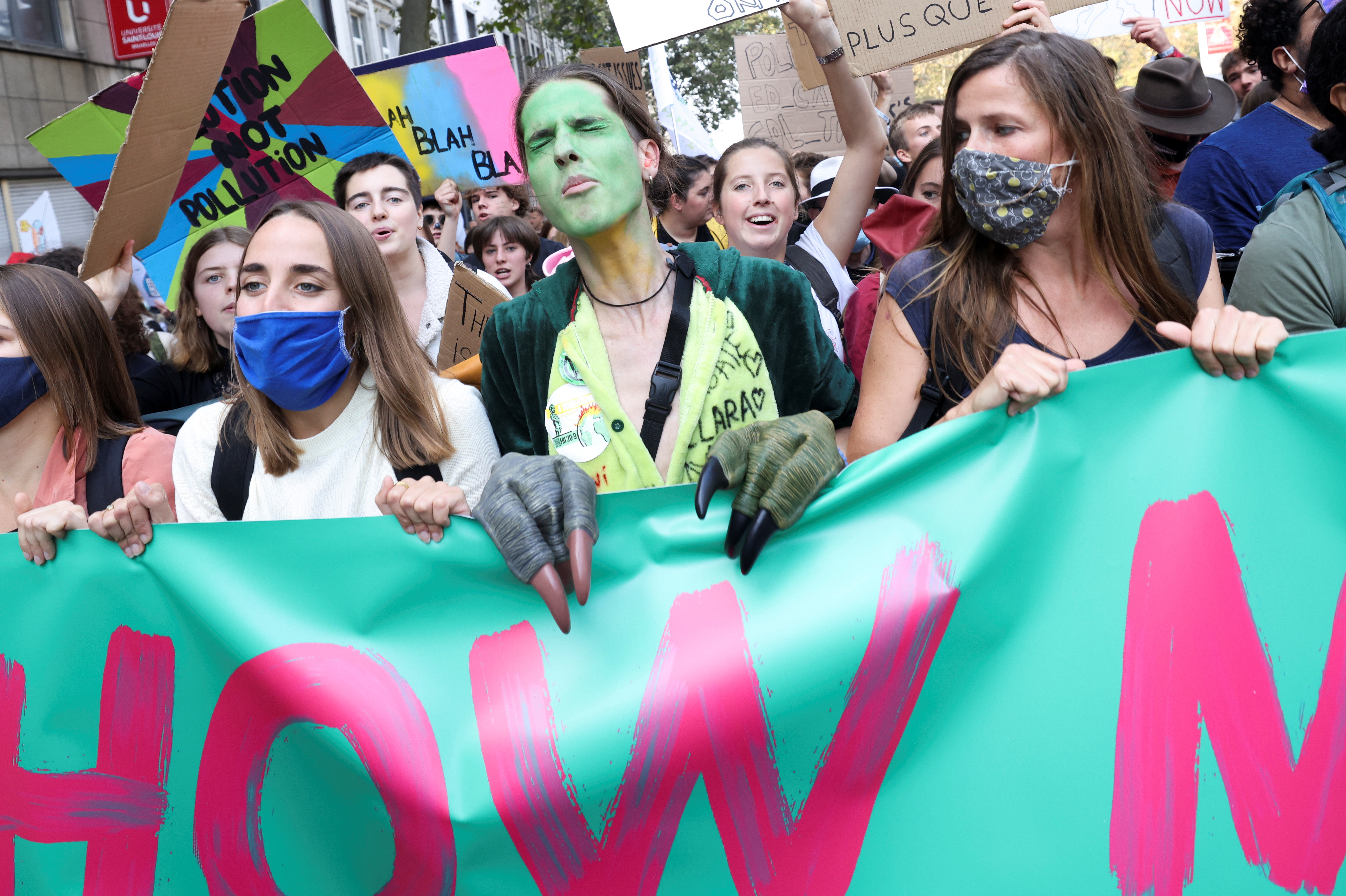 “Politicians die of old age, Rosa died of climate change,” said one banner referring to a 15-year-old who was swept away by Belgium’s Ourthe River in July, when Europe was battered by days of torrential rain and floods.