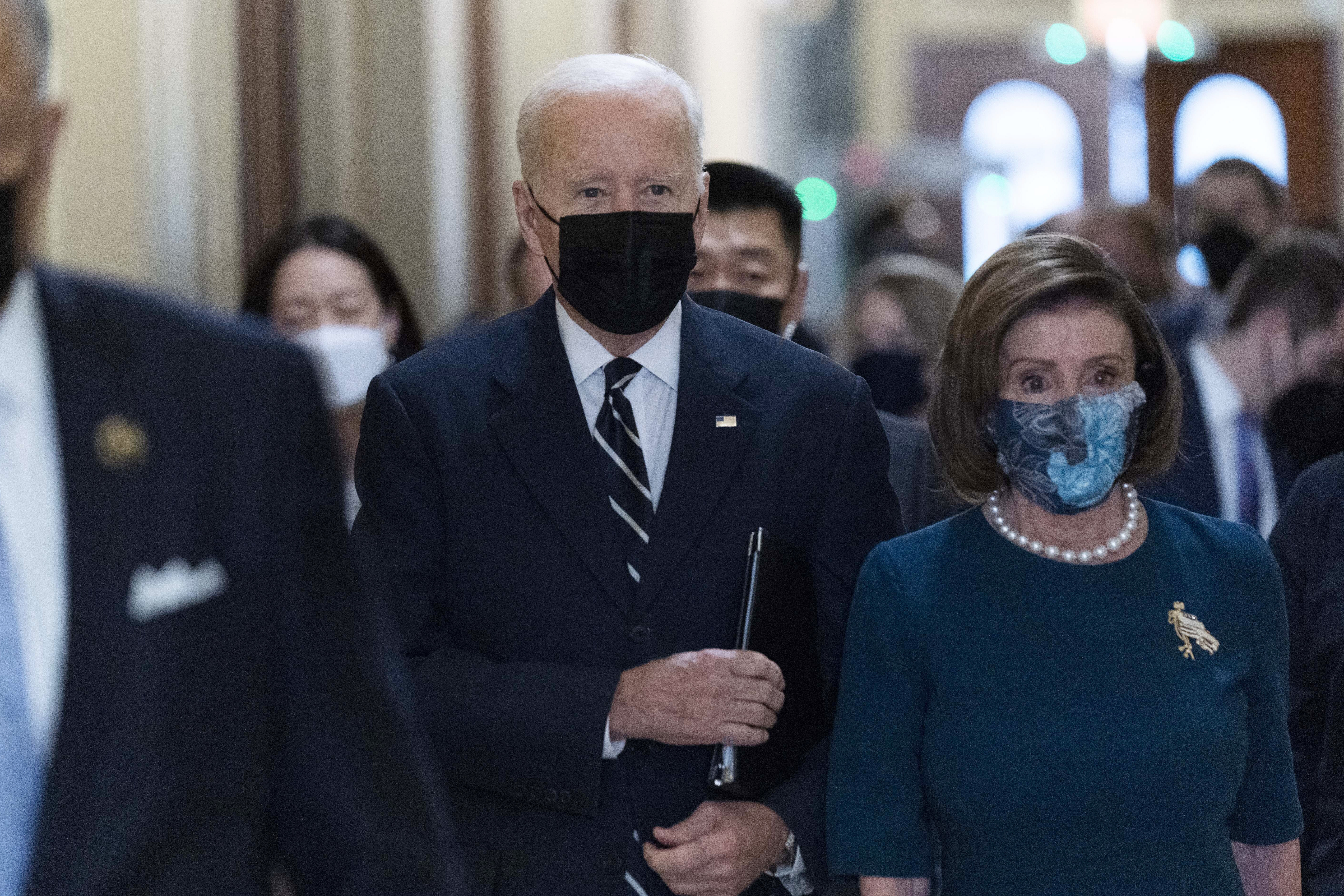 Progressives were meeting on Capitol Hill with Speaker Pelosi to review the details of Biden’s agreement.
