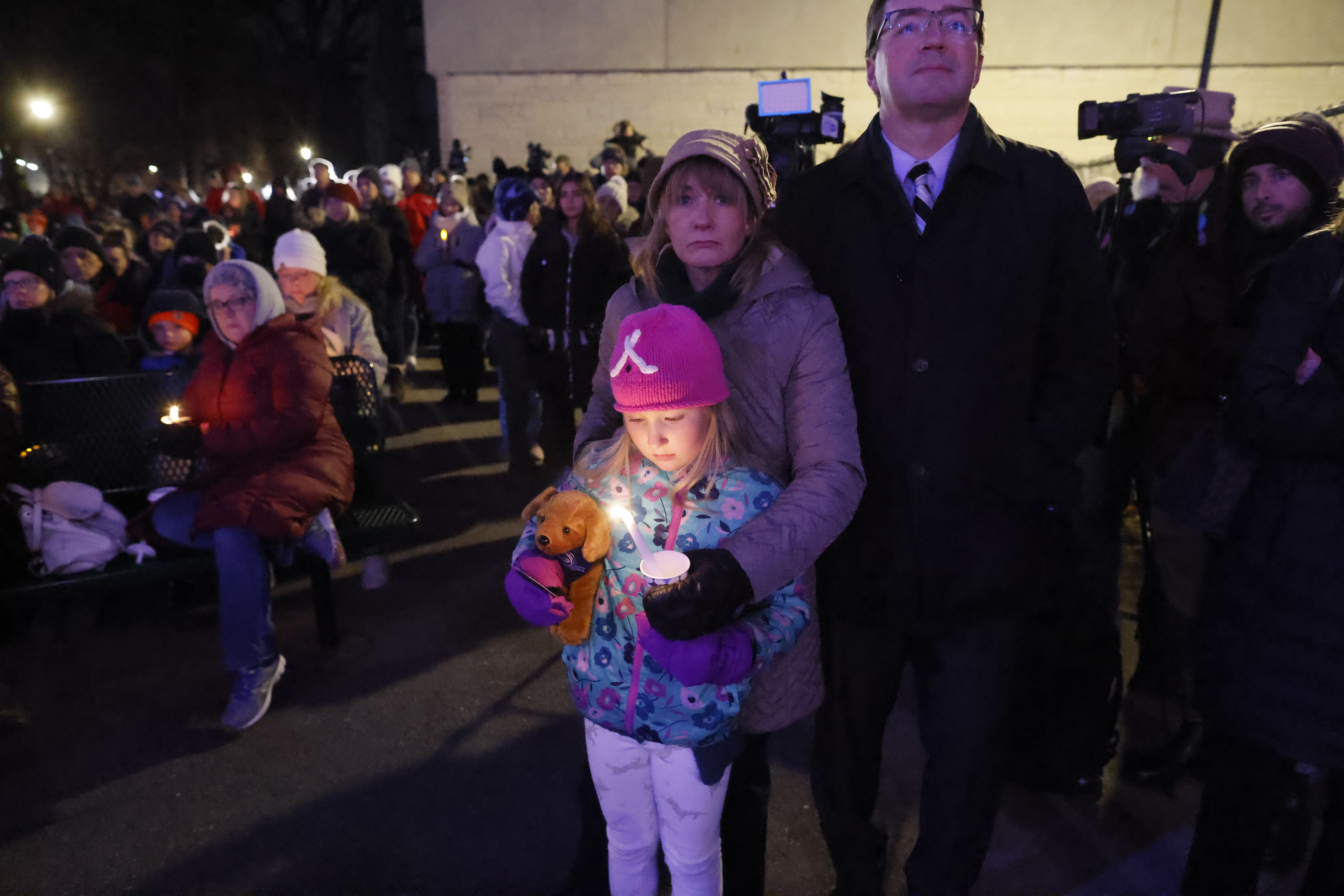 A pair of clergy solemnly read the names of those who died. Volunteers handed out sandwiches, hot chocolate and candles at the vigil, which was attended by interfaith leaders and elected officials.