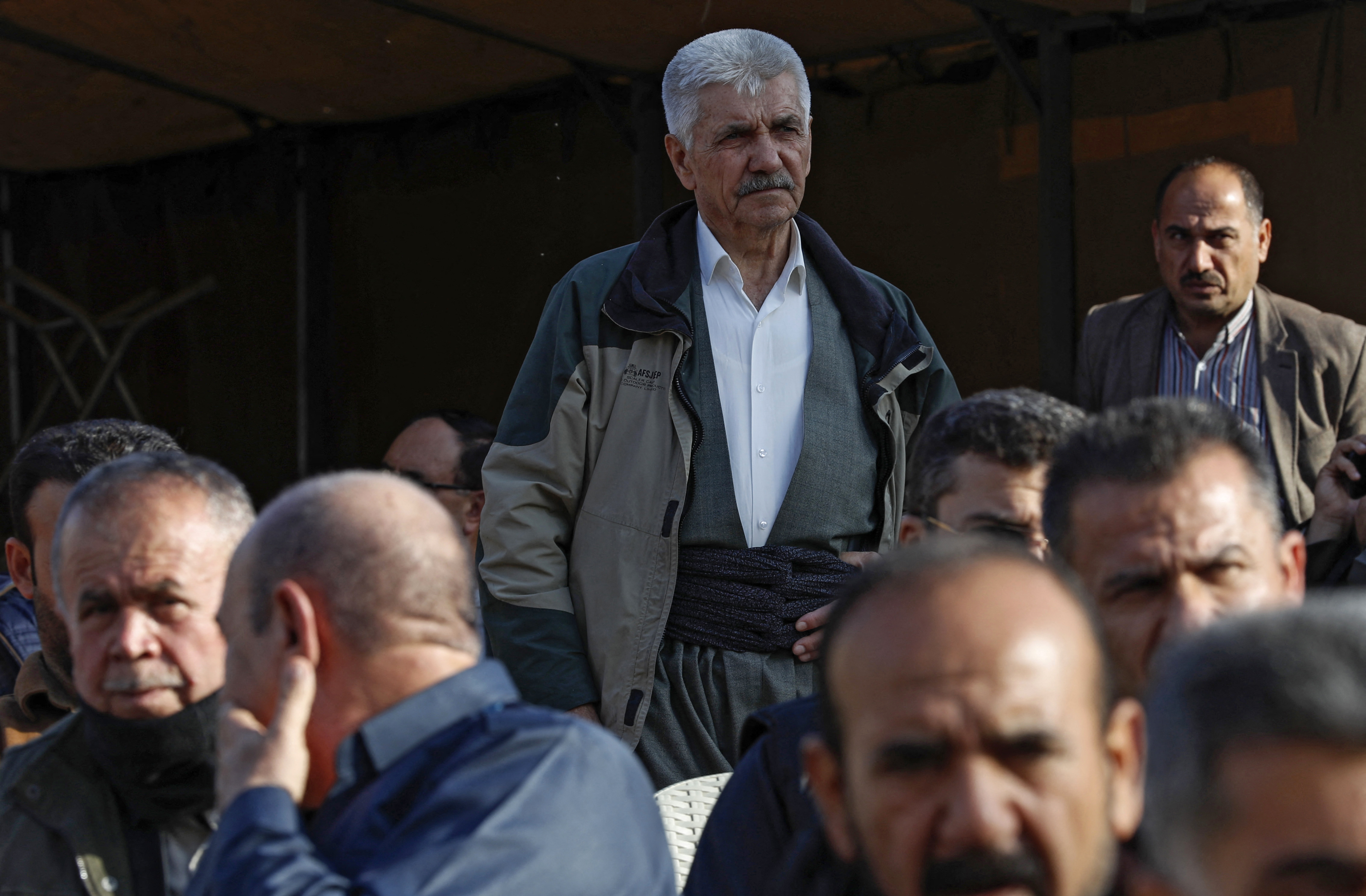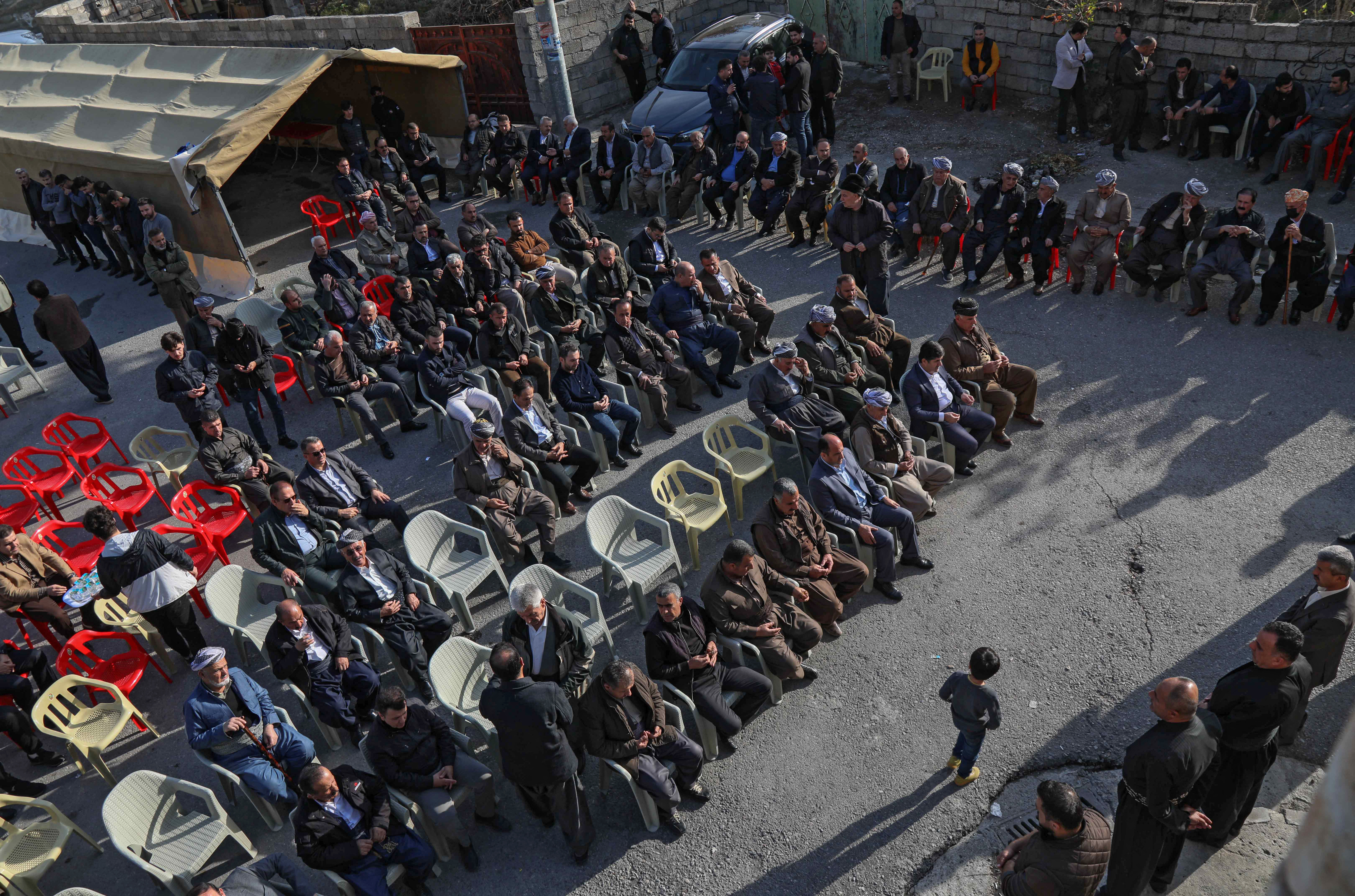 On Saturday, dozens of men, many dressed in traditional Kurdish clothes, sat reciting a prayer.