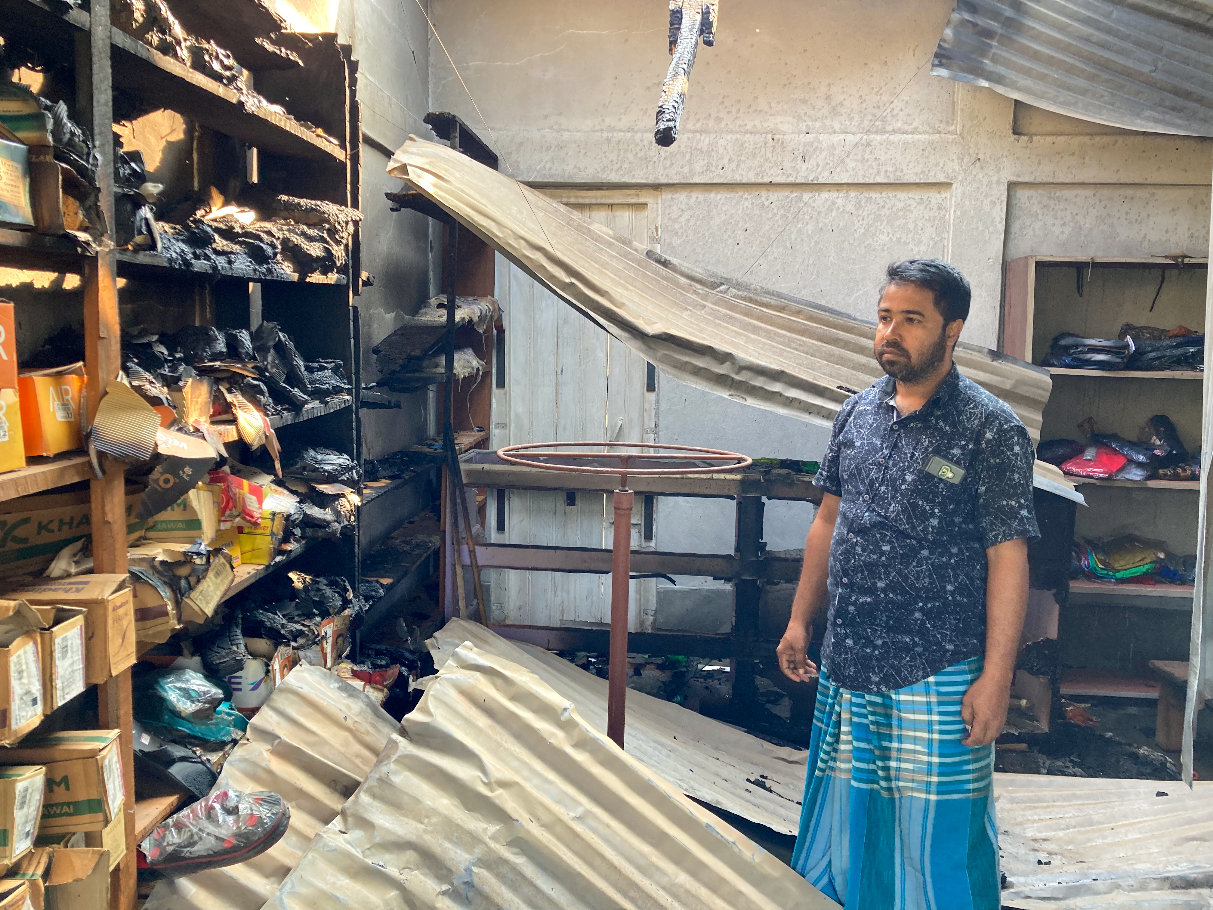 “One of them served as the local BJP office. Even that was not spared,” said Ali as he stood inside his charred shop where he sold footwear and clothes.