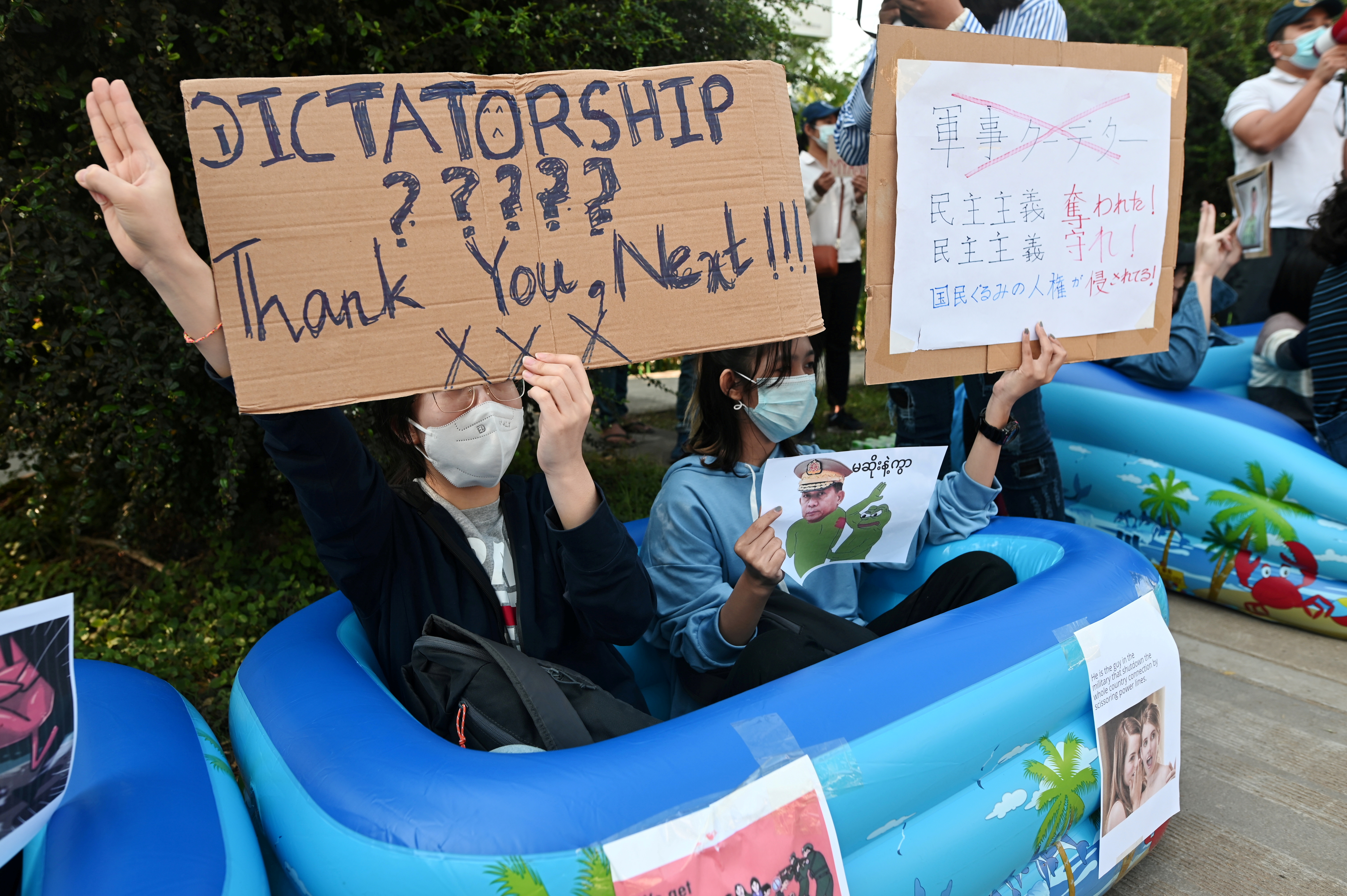 “They won’t put any budget in education and then will send their children to top-notch international schools,” said one 23-year-old who was out protesting on Wednesday in Yangon, Myanmar’s largest city, with a group of friends. Like many others, the protests had brought out the young men’s creativity. They were dressed in kimonos and carrying vulgar, humorous signs, including one mocking Senior General Min Aung Hlaing’s height.