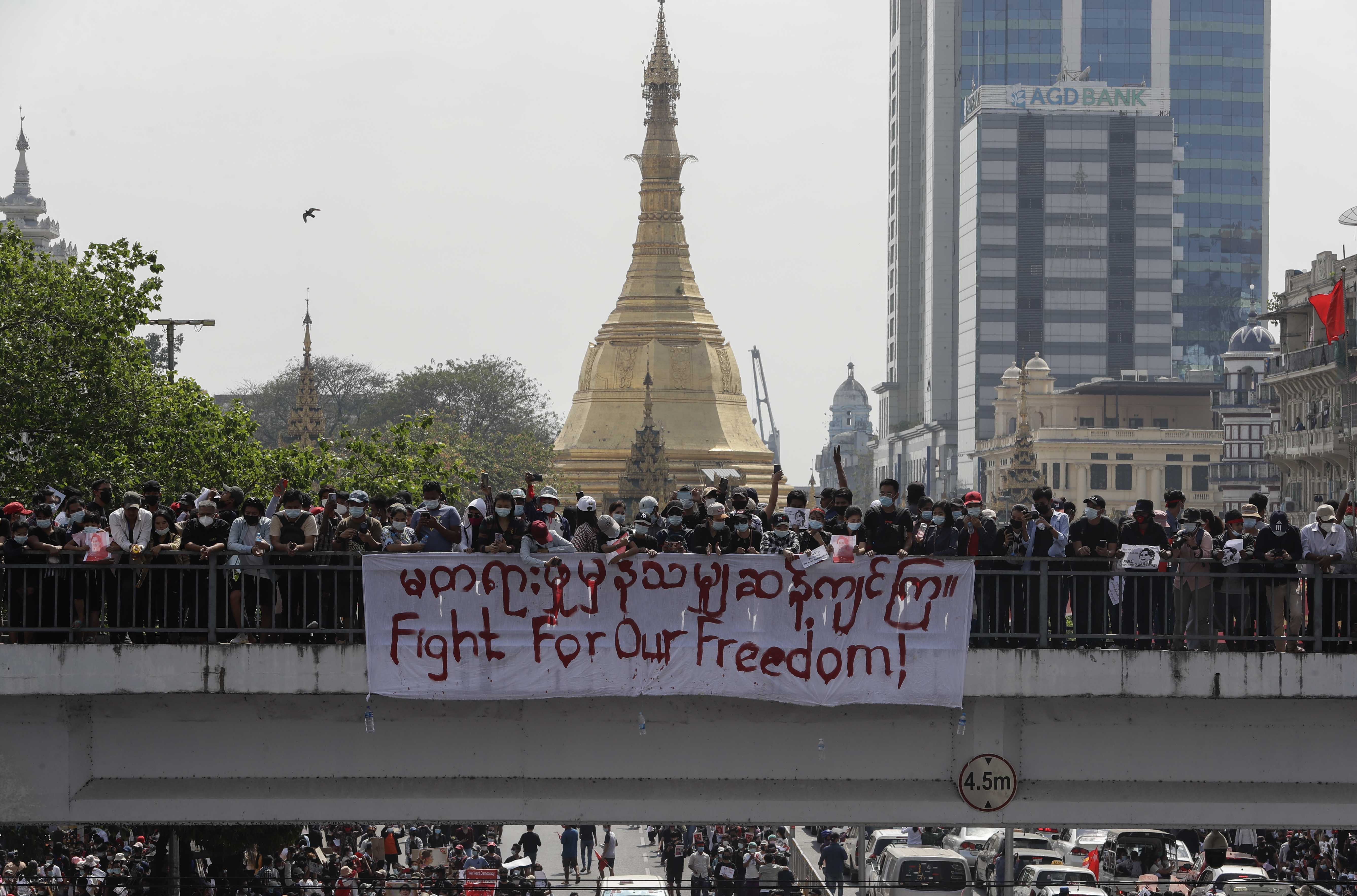 - list 2 of 4Myanmar protests continue after violence, raid on NLD office