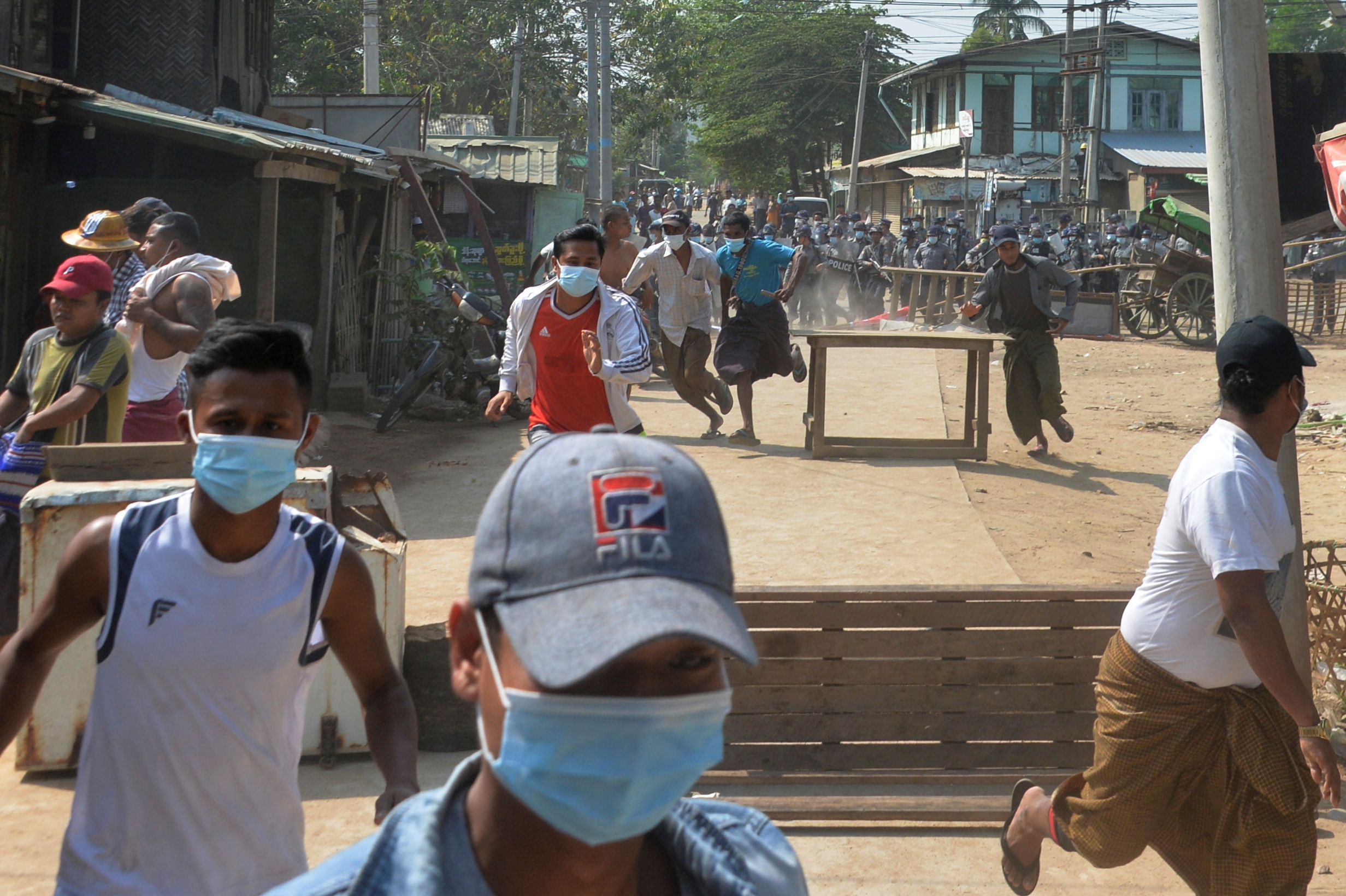 Domestic media and witnesses reported a similar confrontation in Mandalay where police also fired rubber bullets.
