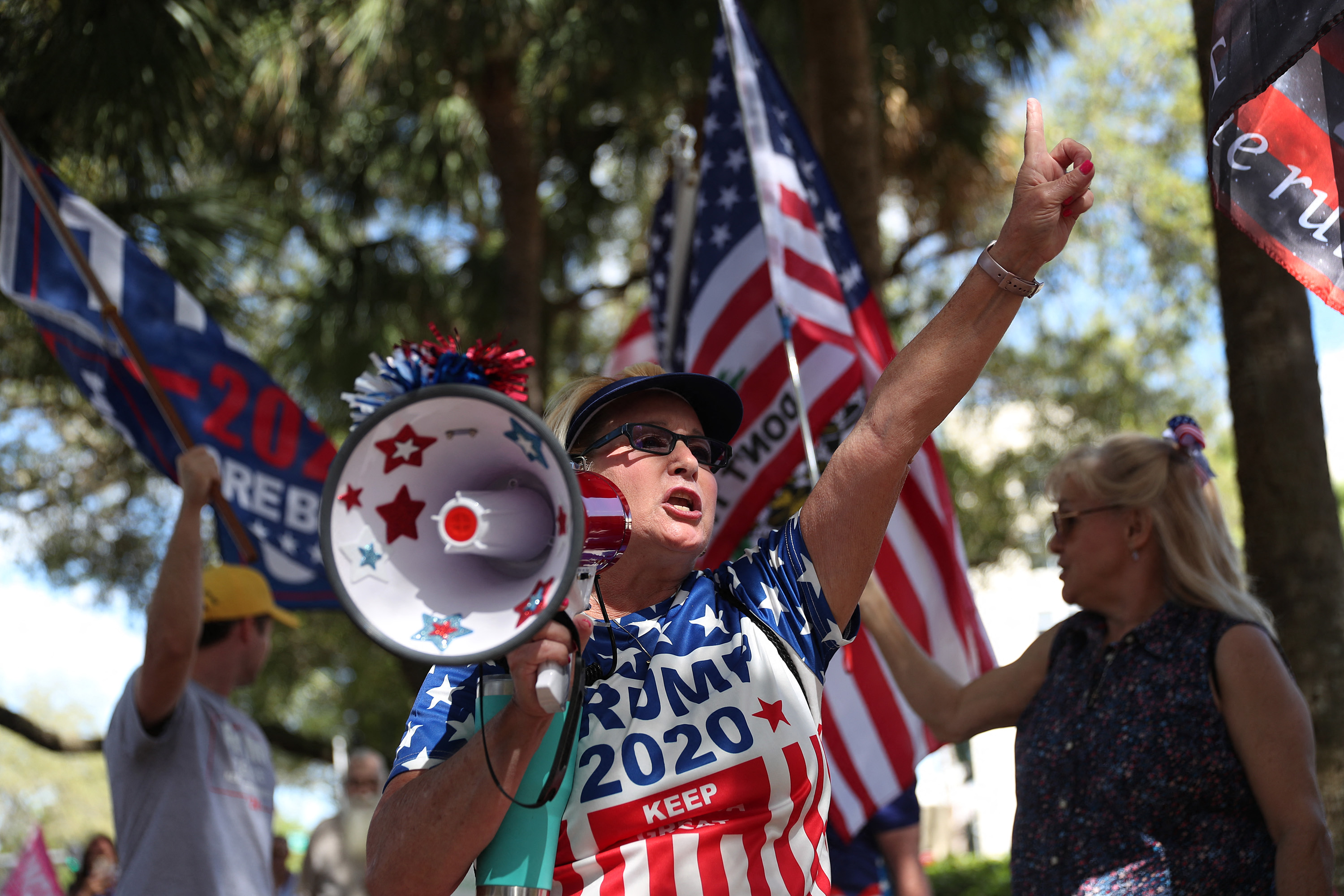 Trump supporters travelled from across the country to see the former president’s first remarks since he left office in January.