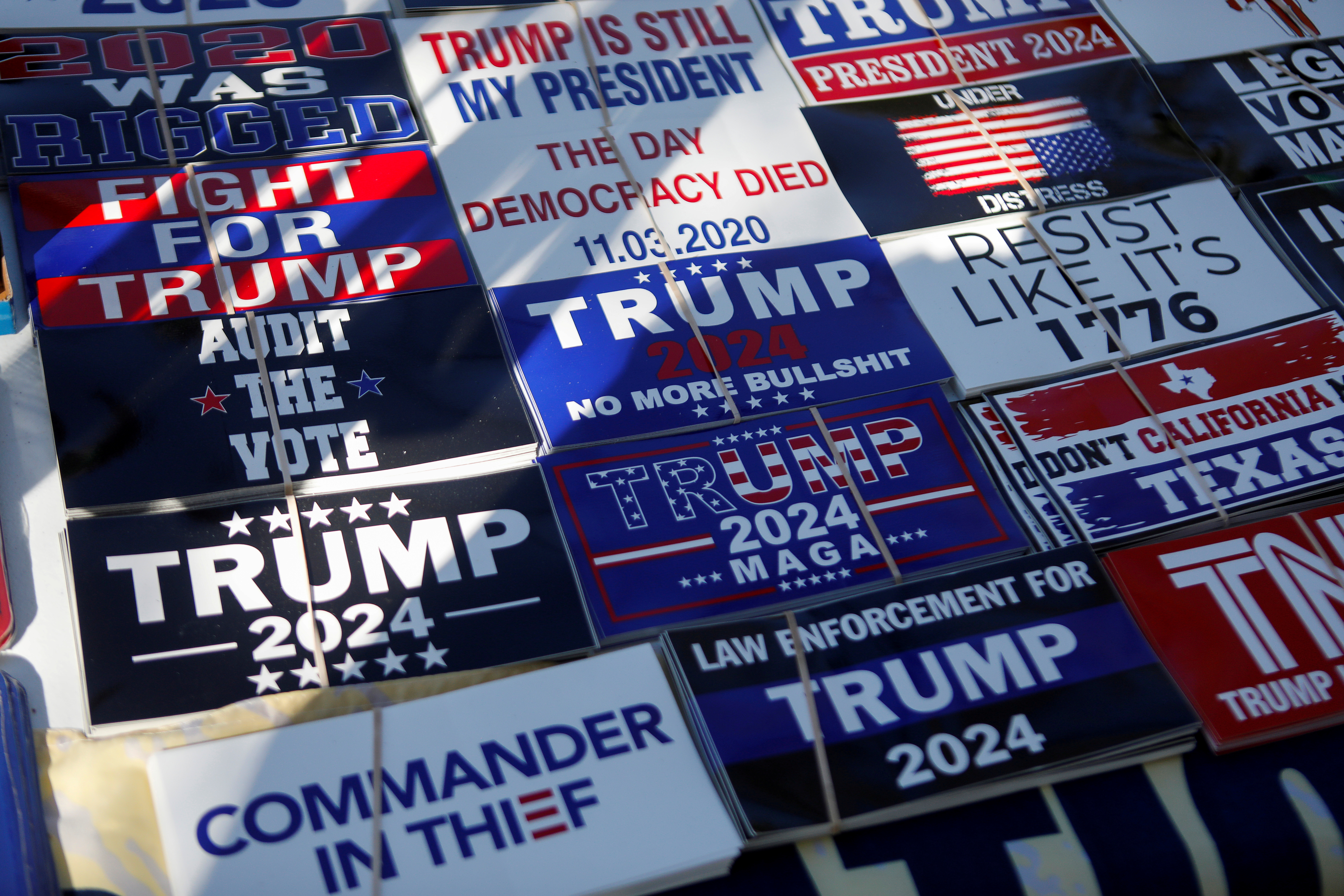 Hats, shirts and other pro-Trump paraphernalia were on display at the conference, where attendees took photos alongside a gold statue of the former president.