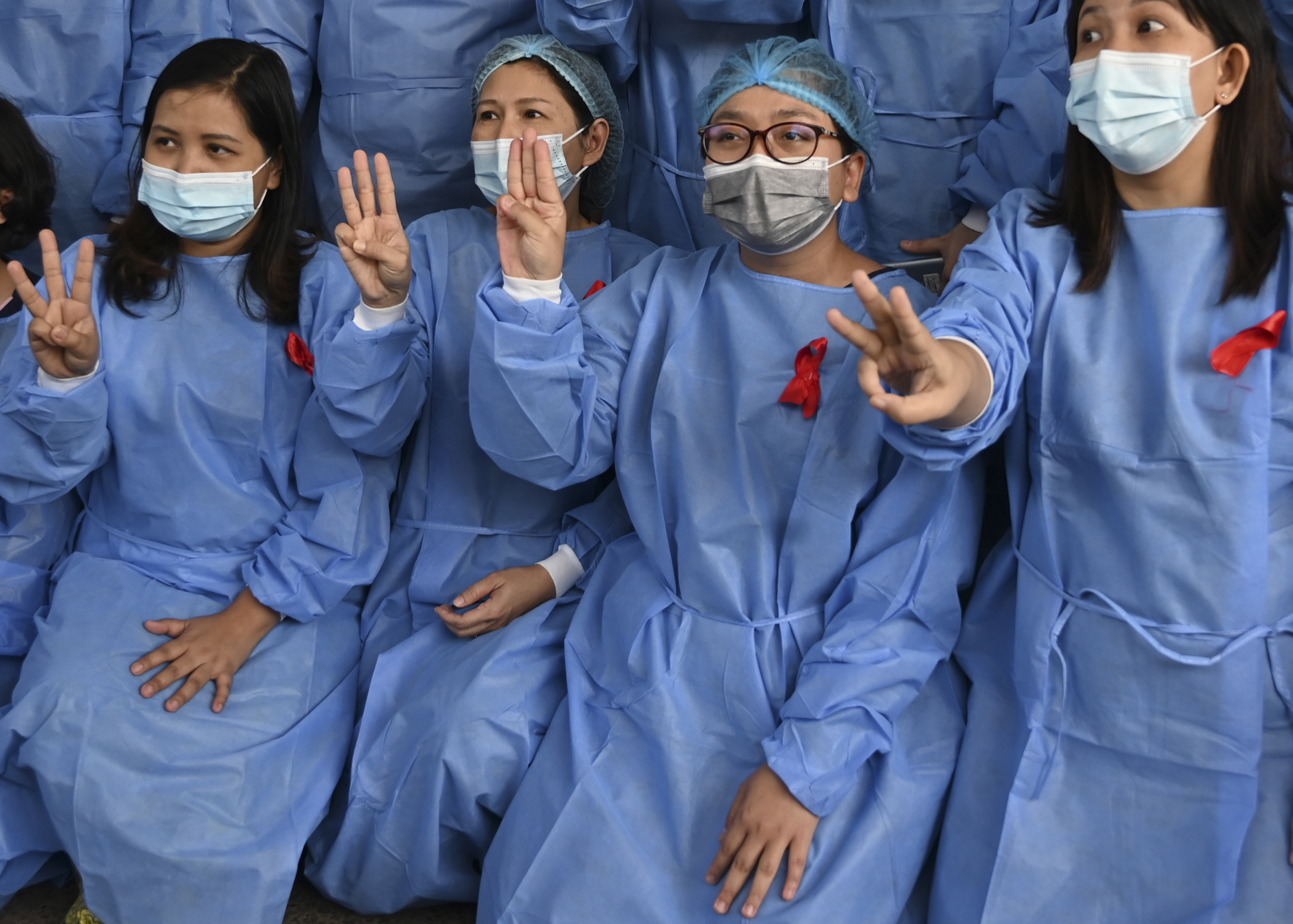 Front-line healthcare workers from more than 70 medical facilities across the country announced a walkout in response to the putsch.