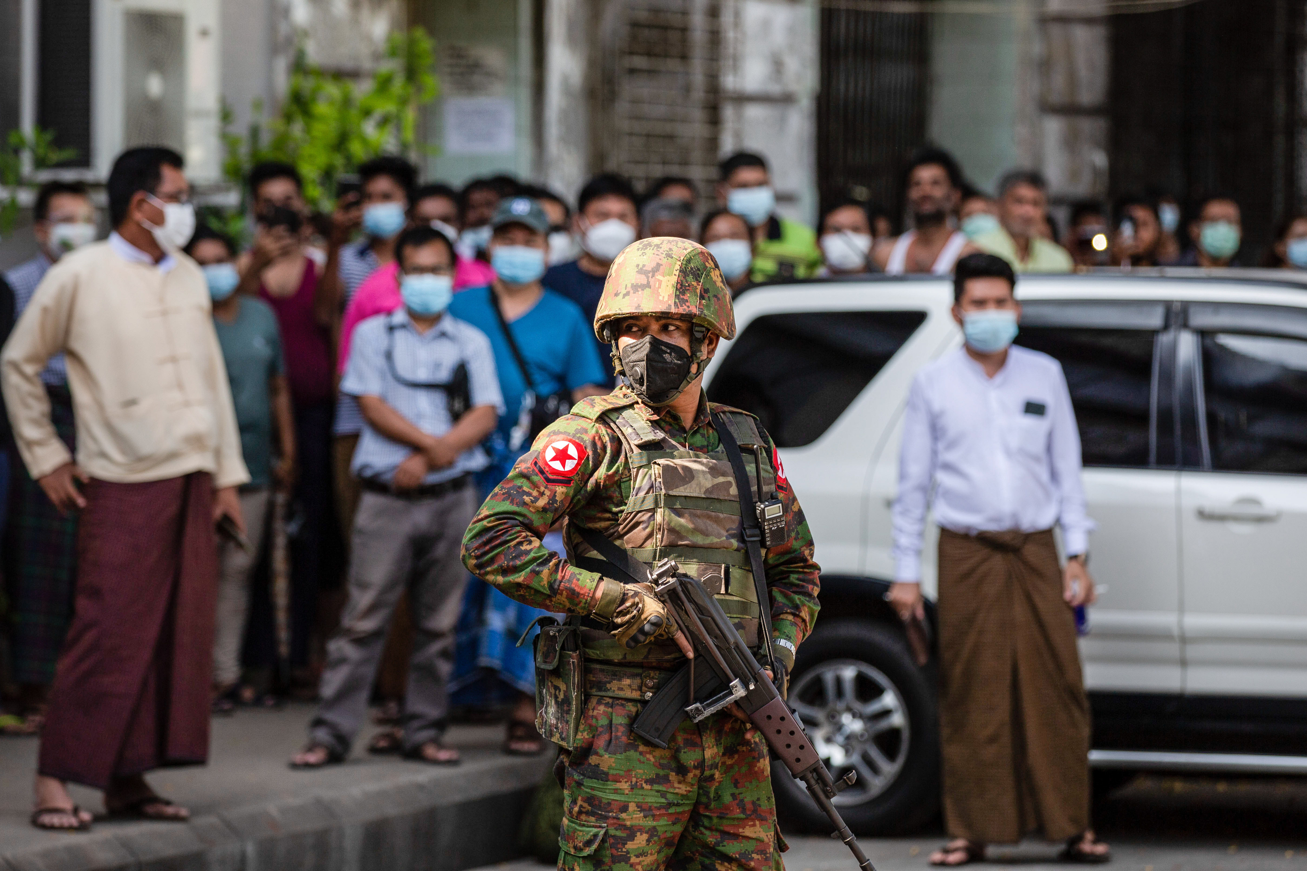 People in Yangon also picked up pots and pans on Tuesday night to bang out their disgust at the power grab.