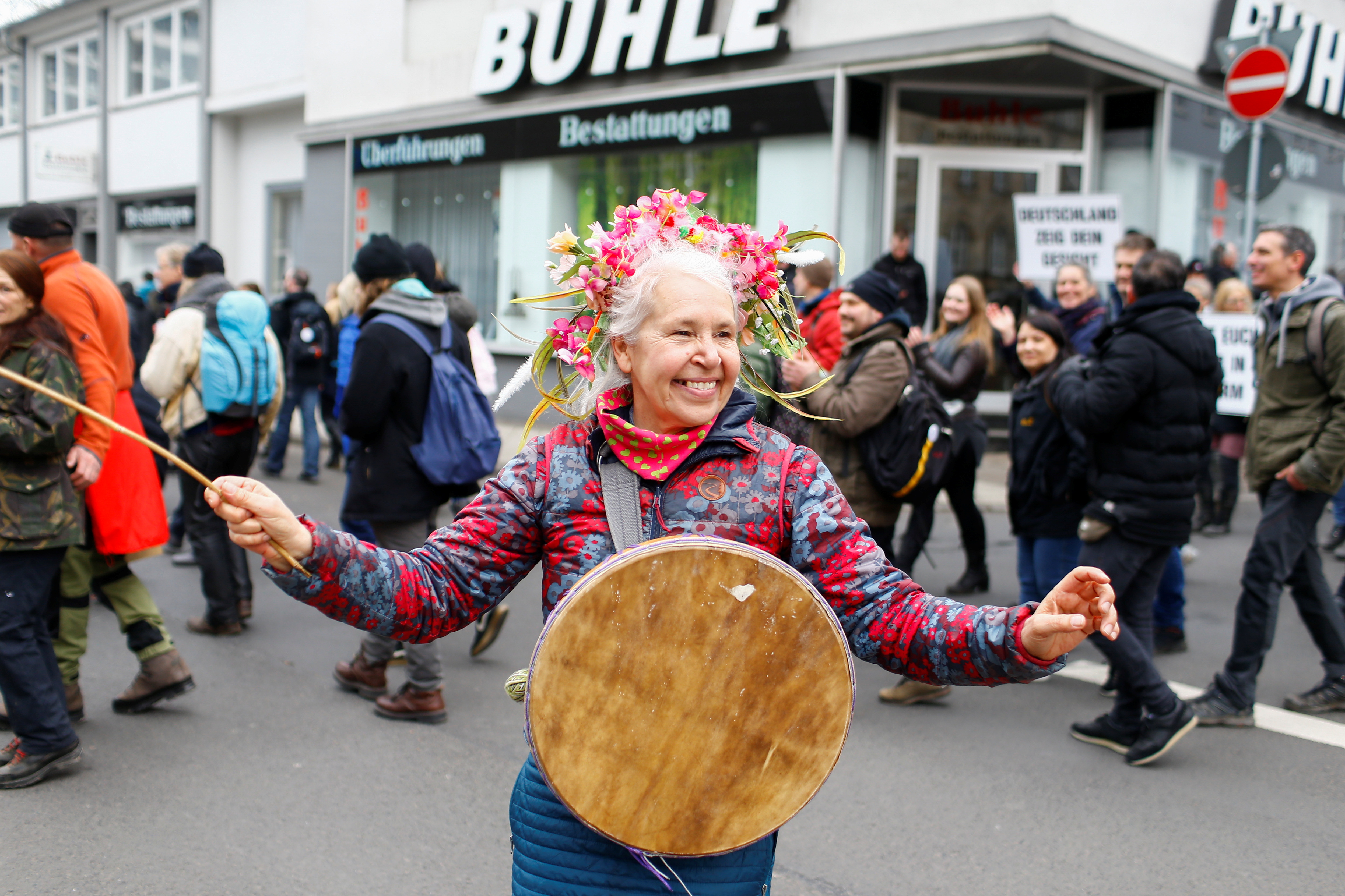 “End the lockdown” and “Corona rebels”, read signs held by demonstrators at the protest in Kassel, which was organised by a group that has drawn in activists from both the far-left and far-right as well as anti-vaxxers and conspiracy theorists.