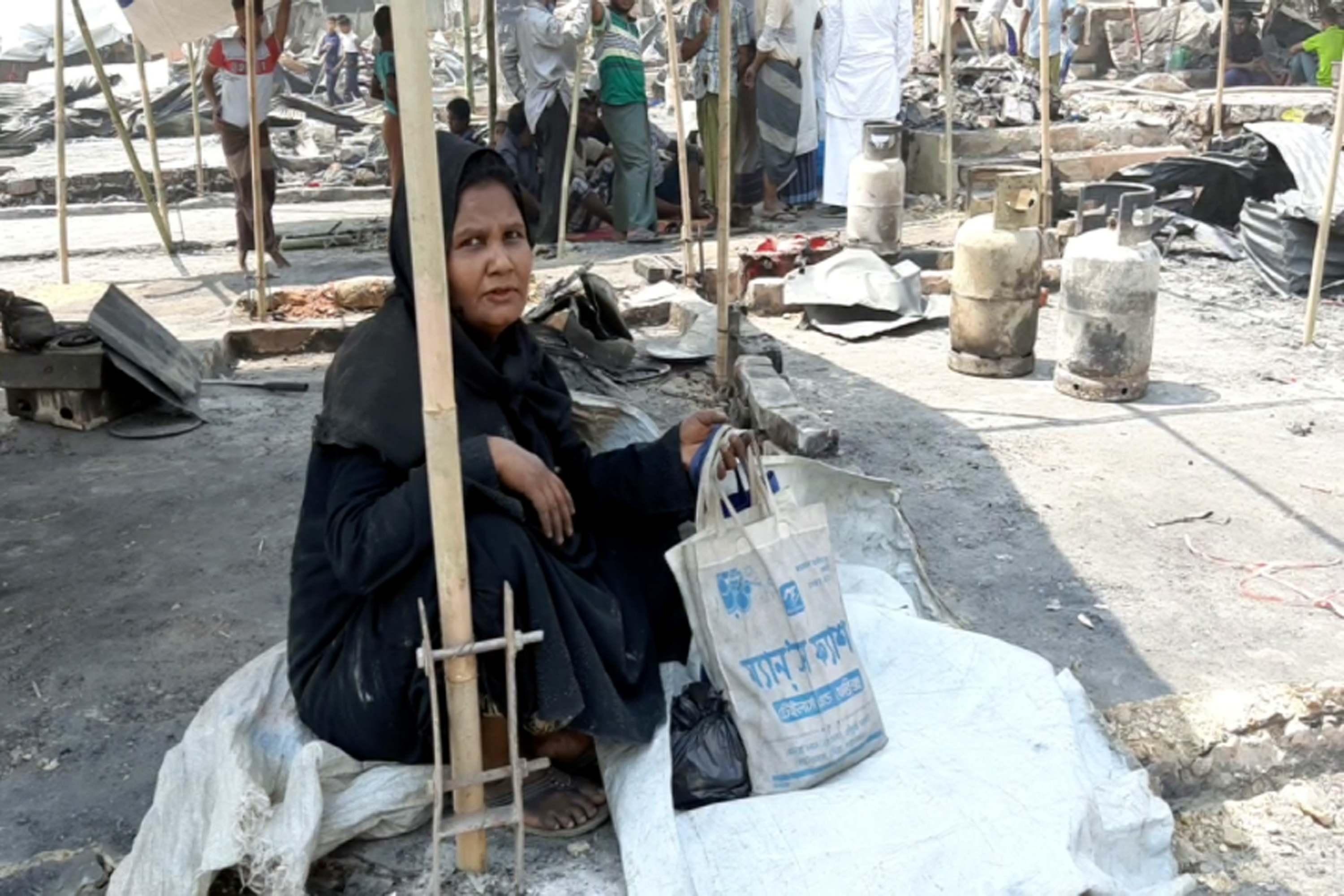 “I don’t know for how long God will keep testing us. I have nothing now,” said Begum, whose belongings were all turned into ashes when her shelter out of bamboo and tarpaulin was swallowed by the flames.