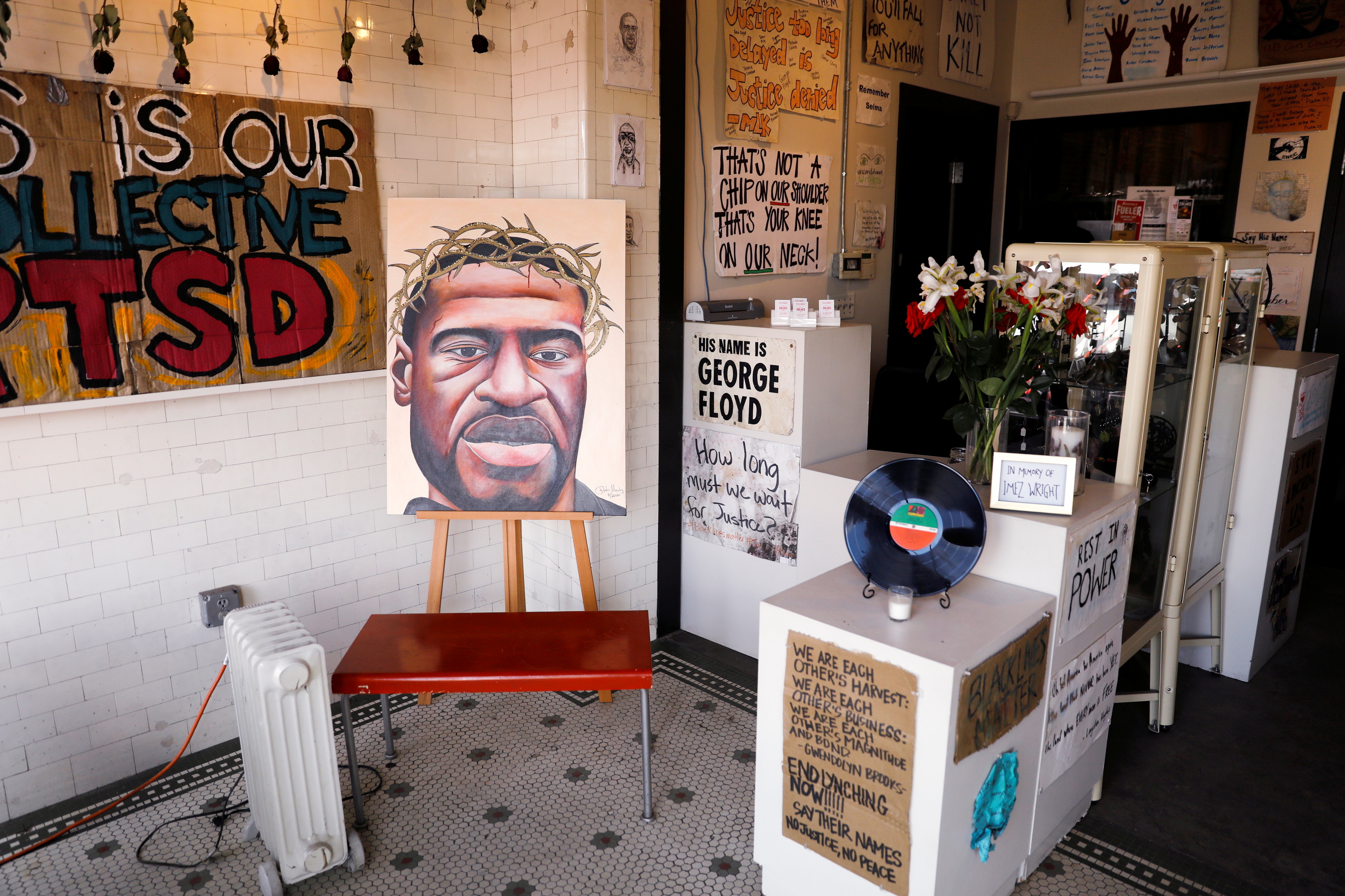 On the day they met, she was waiting in the lobby to see the father of her son, tired after closing up the coffee shop where she worked. Floyd approached her.