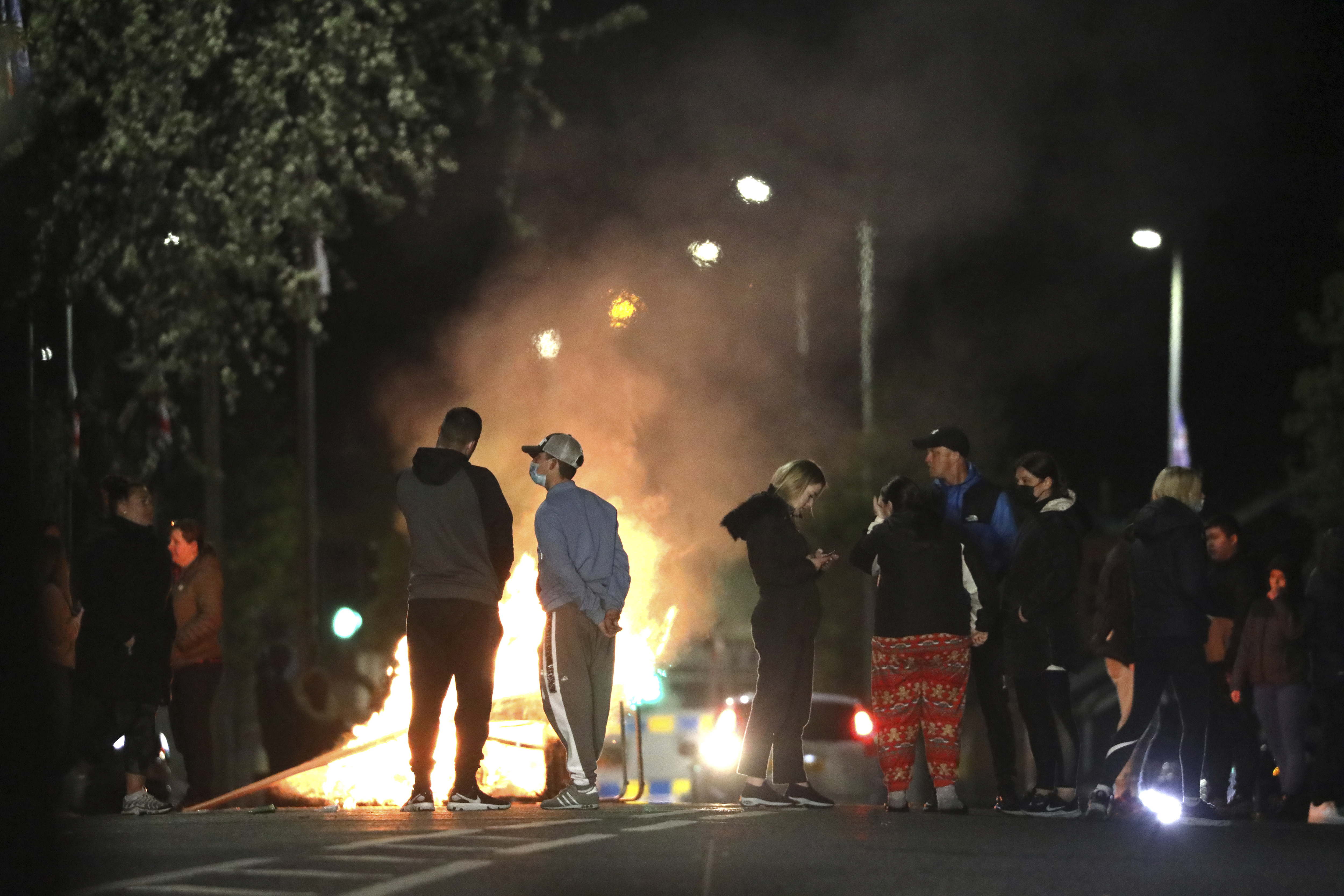Days later, a loyalist protest of 100 people in an area of South Belfast on Good Friday quickly descended into violence, with petrol bombs being thrown and police officers injured.