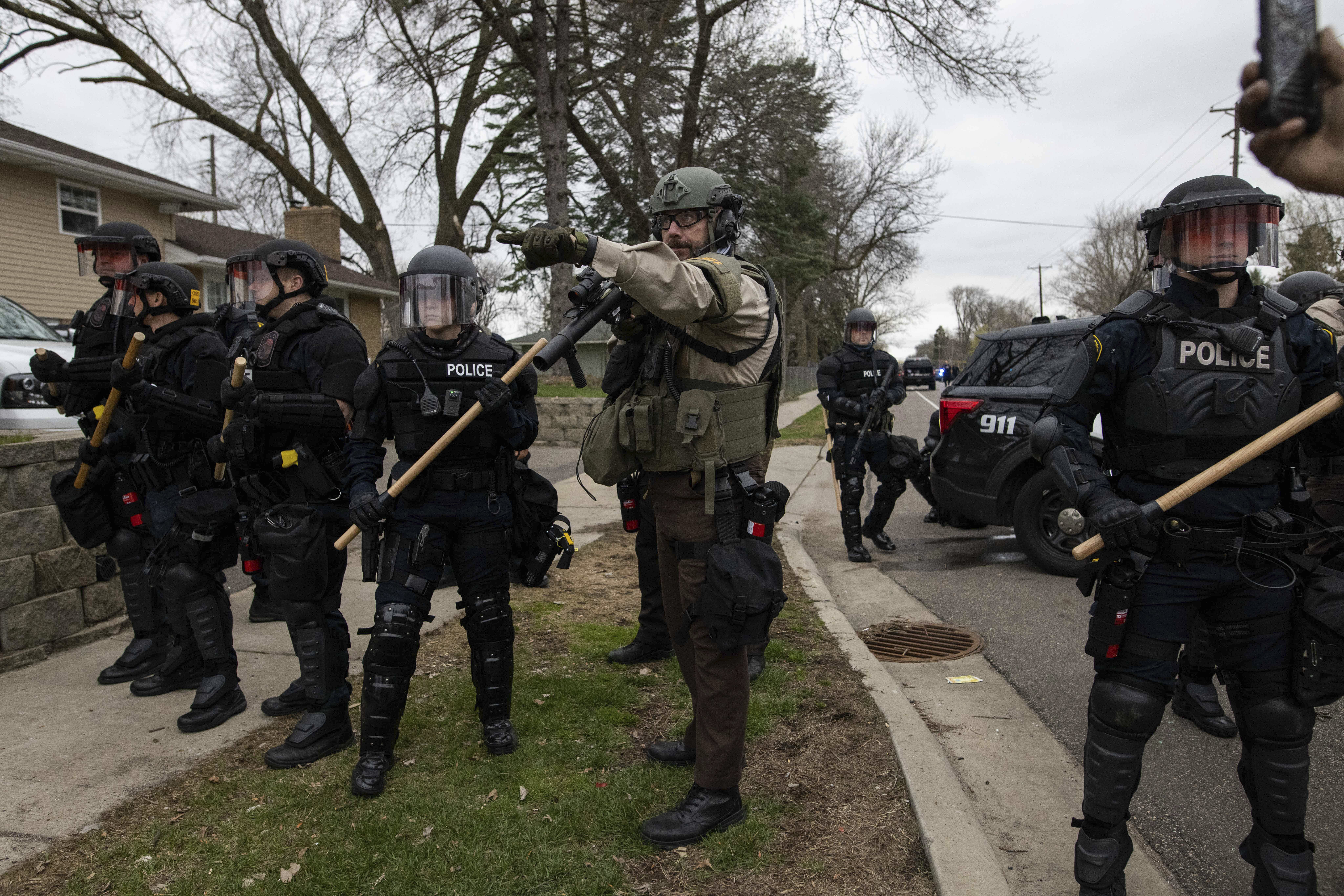 The Minnesota National Guard is guarding the Brooklyn Center police headquarters and law enforcement officers were erecting a concrete barrier as Minnesota State Patrol officers joined the line in front of the precinct.