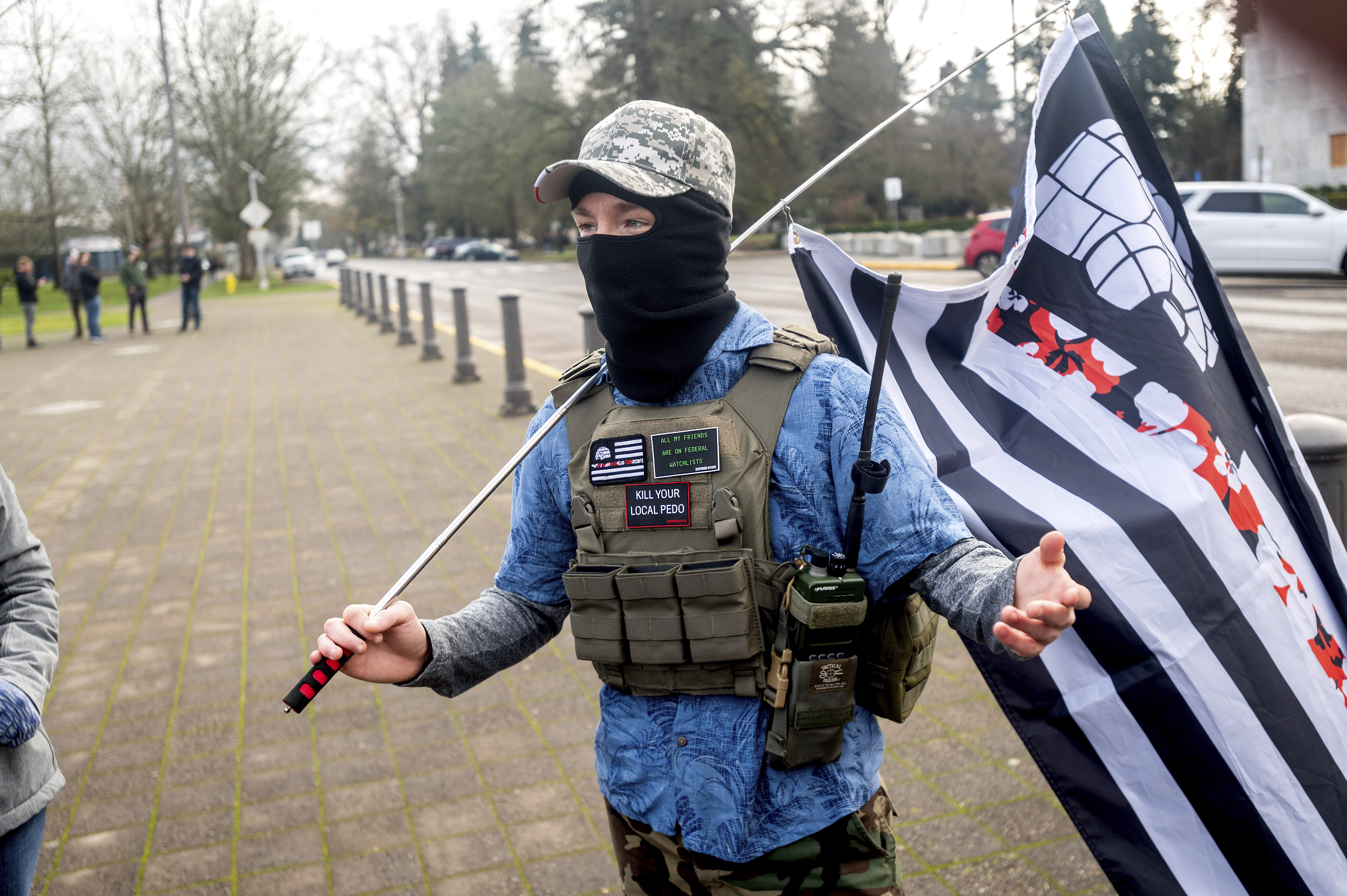 Panvidya said the Boogaloo’s cooperation with other groups is “less about affiliation and what you call yourself” and more about “your ideology and what are you trying to accomplish … There’s some parts of the country where we work with BLM and we get into fistfights with Three Percenters on sight, and then there’s other places where the local BLM chapter hates us, and we work with local Three Percenters.”