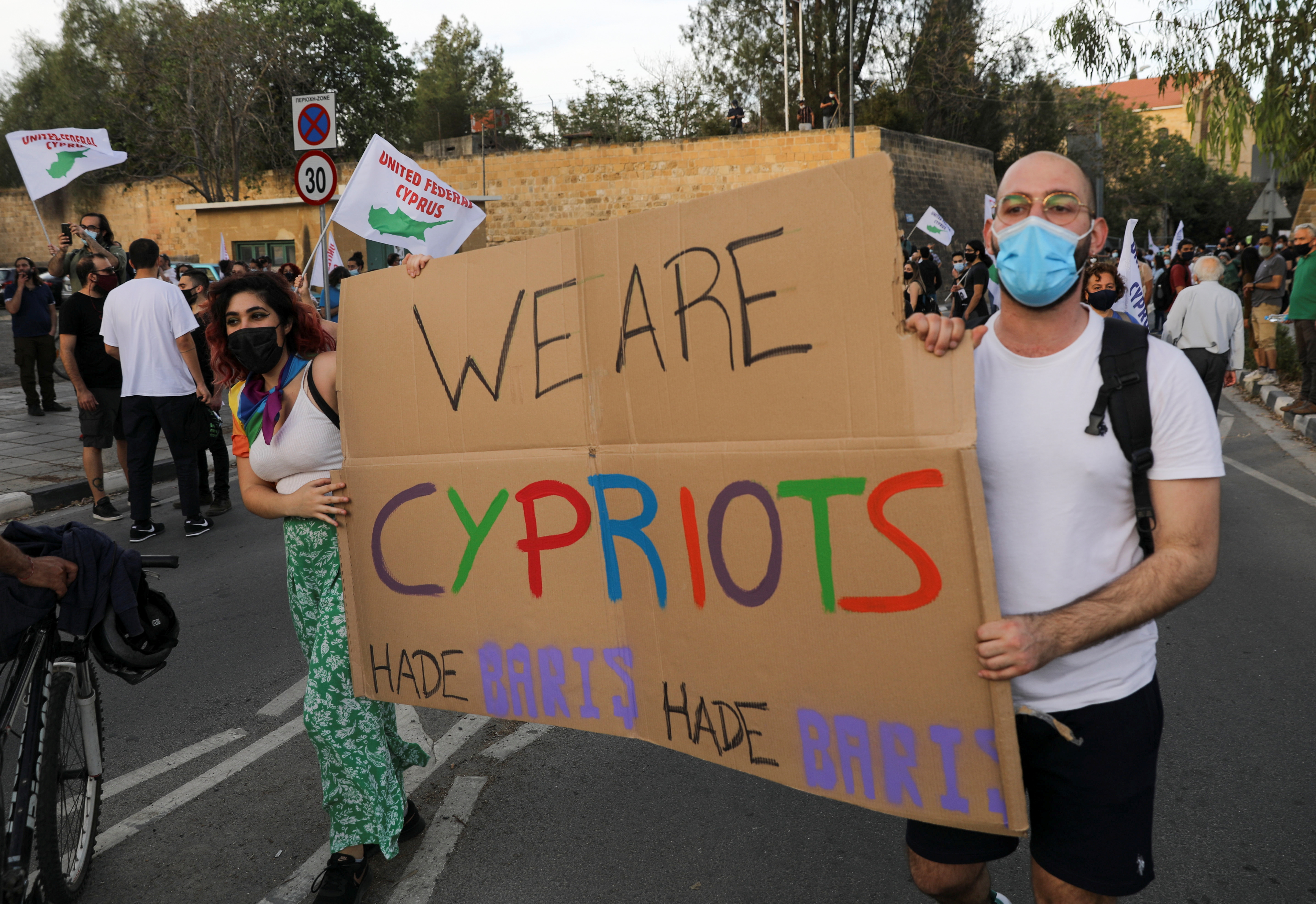 “Cyprus belongs to its people,” demonstrators chanted, holding placards in Greek and Turkish.