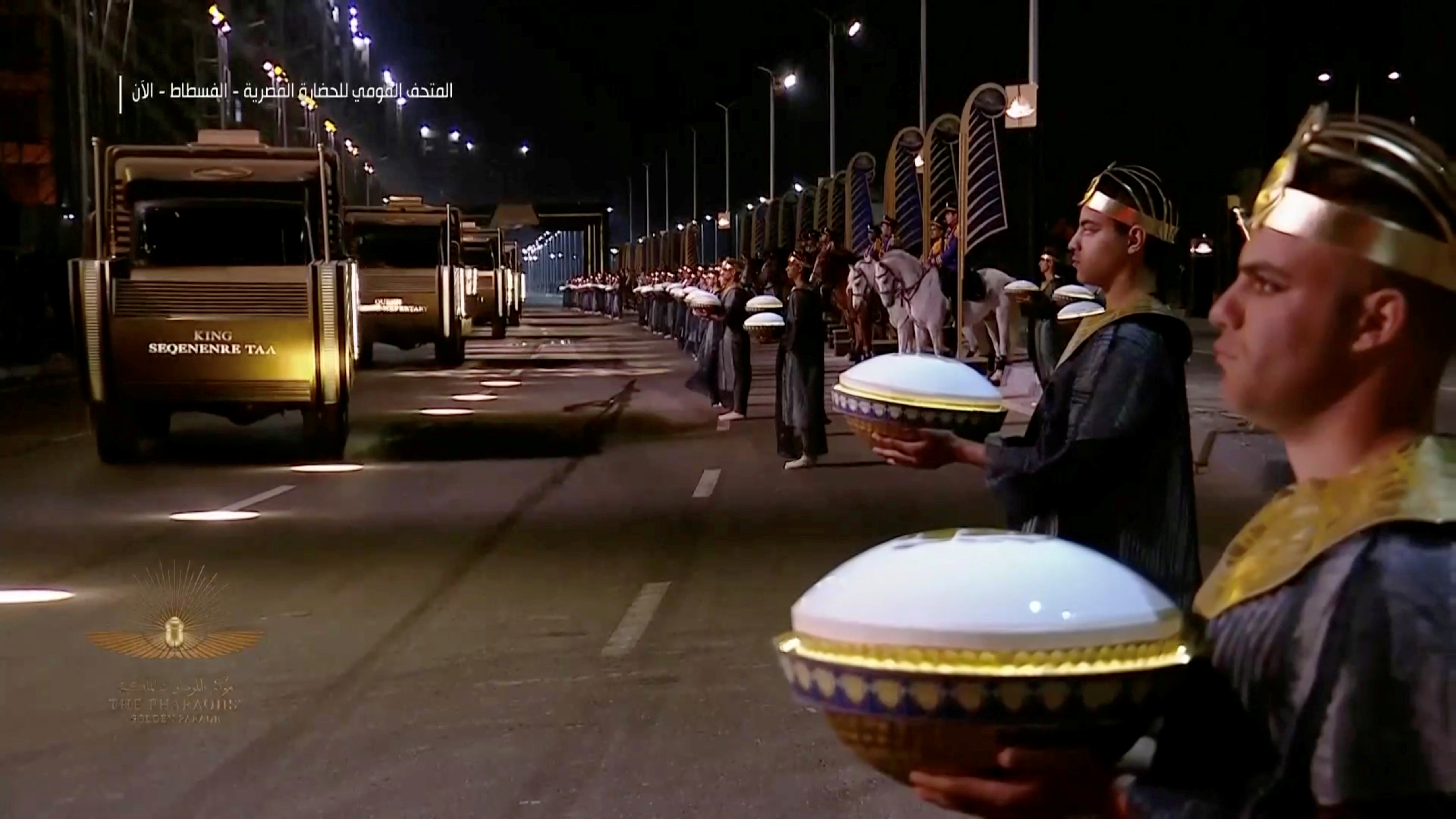 ‘Pharaohs’ Golden Parade’ snakes across Cairo, transporting mummified remains of 18 kings and four queens to their new resting place.
