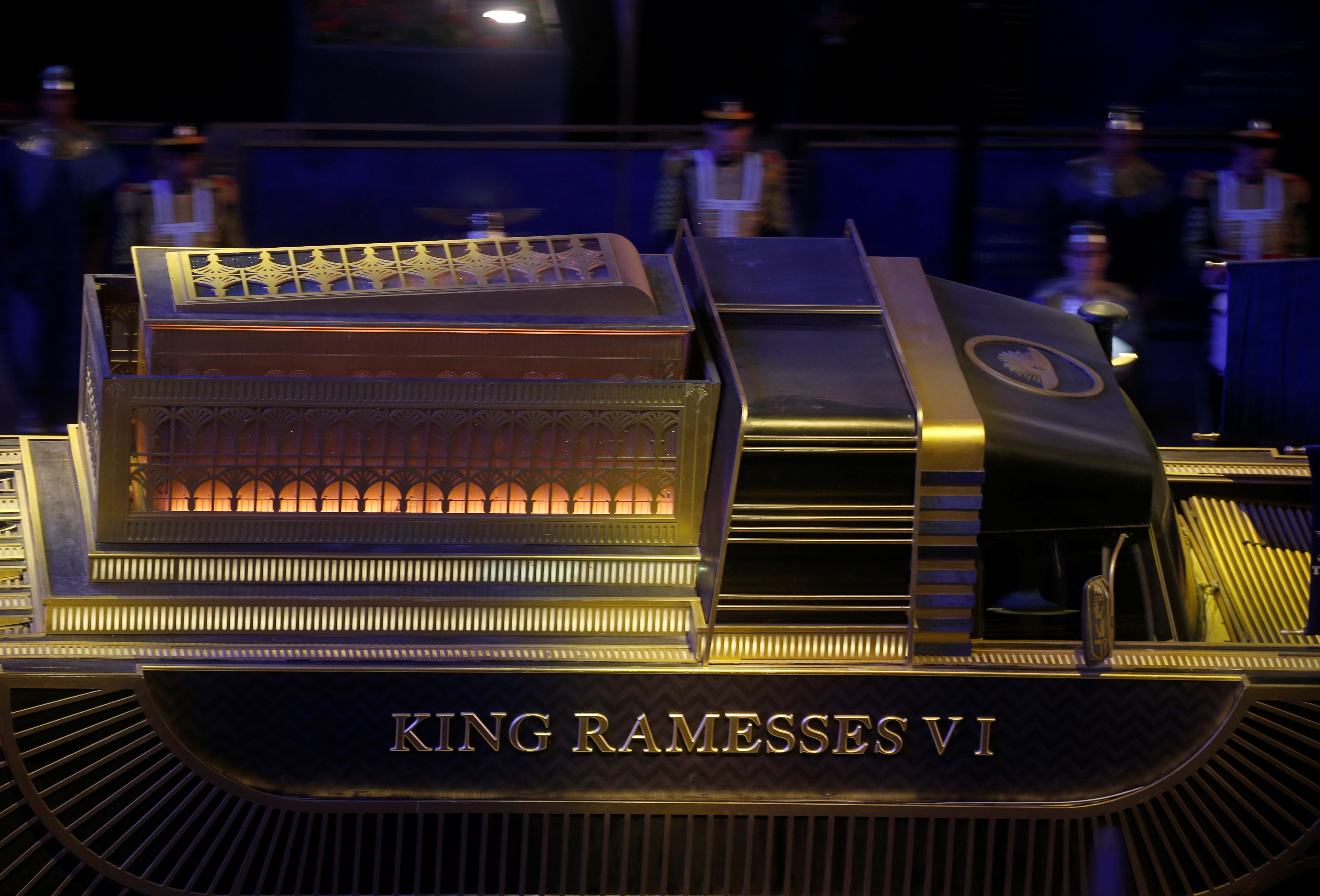 The vehicles were designed to appear like the ancient boats used to carry deceased pharaohs to their tombs.