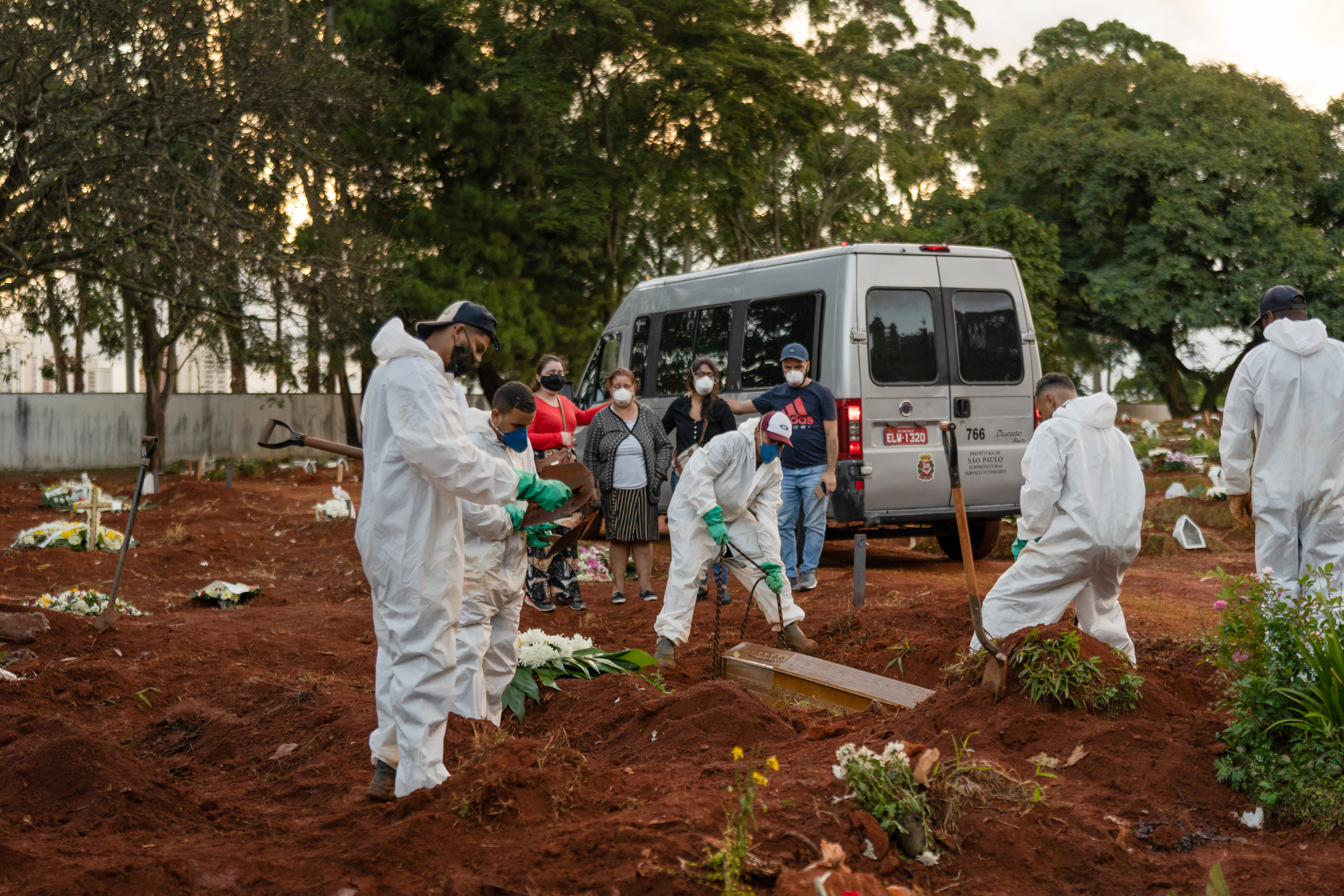 The huge increase in demand led local authorities to set up a generator and lights so that burials could happen at night. It also has taken a physical and mental toll on burial workers.
