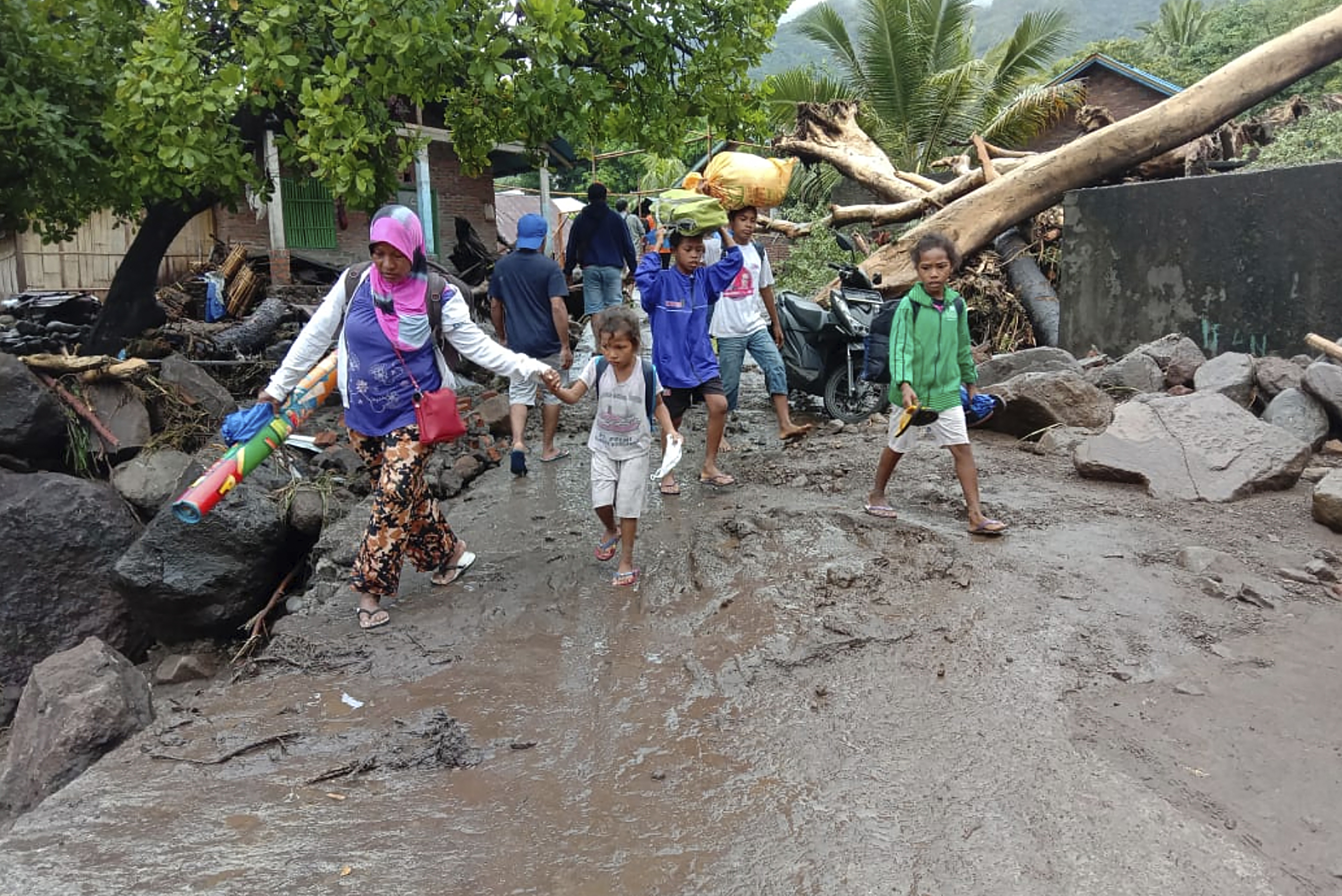 In Indonesia’s remote East Flores municipality, mud washed over homes, bridges and roads, while strong waves prevented search teams from accessing the hardest-hit areas. On Lembata, an island east of Flores, parts of some villages were swept down a mountainside by torrents of mud and carried to the shore of the ocean.