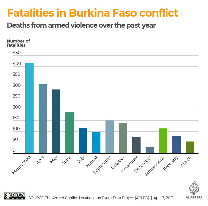 Meanwhile, the analysts Al Jazeera spoke to agreed that international military efforts in the tri-border region – a violence hot spot where the frontiers of Burkina Faso, Mali and Niger converge – have also had an effect in reducing fatalities.