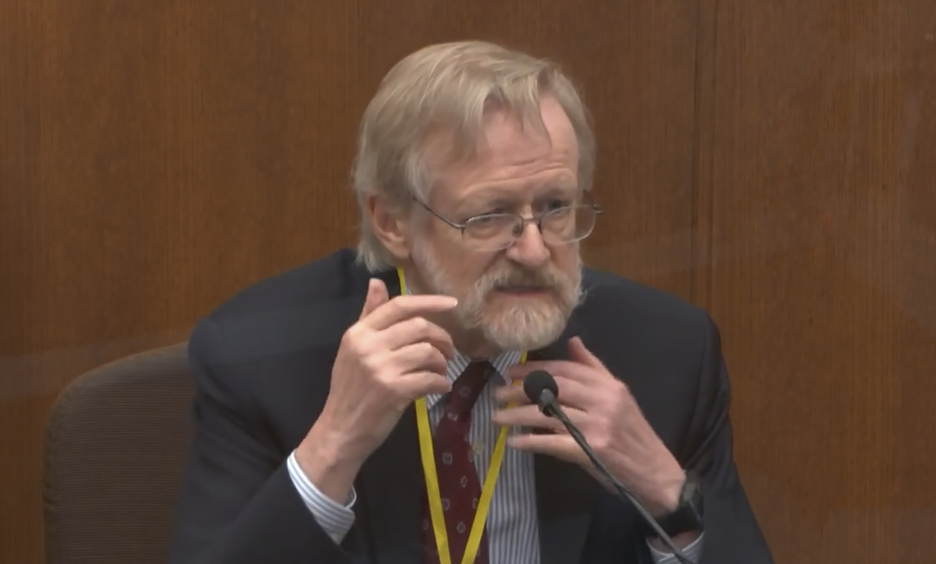 He cited several other factors that he said made it difficult for Floyd to breathe; officers lifting up on the suspect’s handcuffs, the hard surface of the street, his prone position, his turned head and a knee on his back.