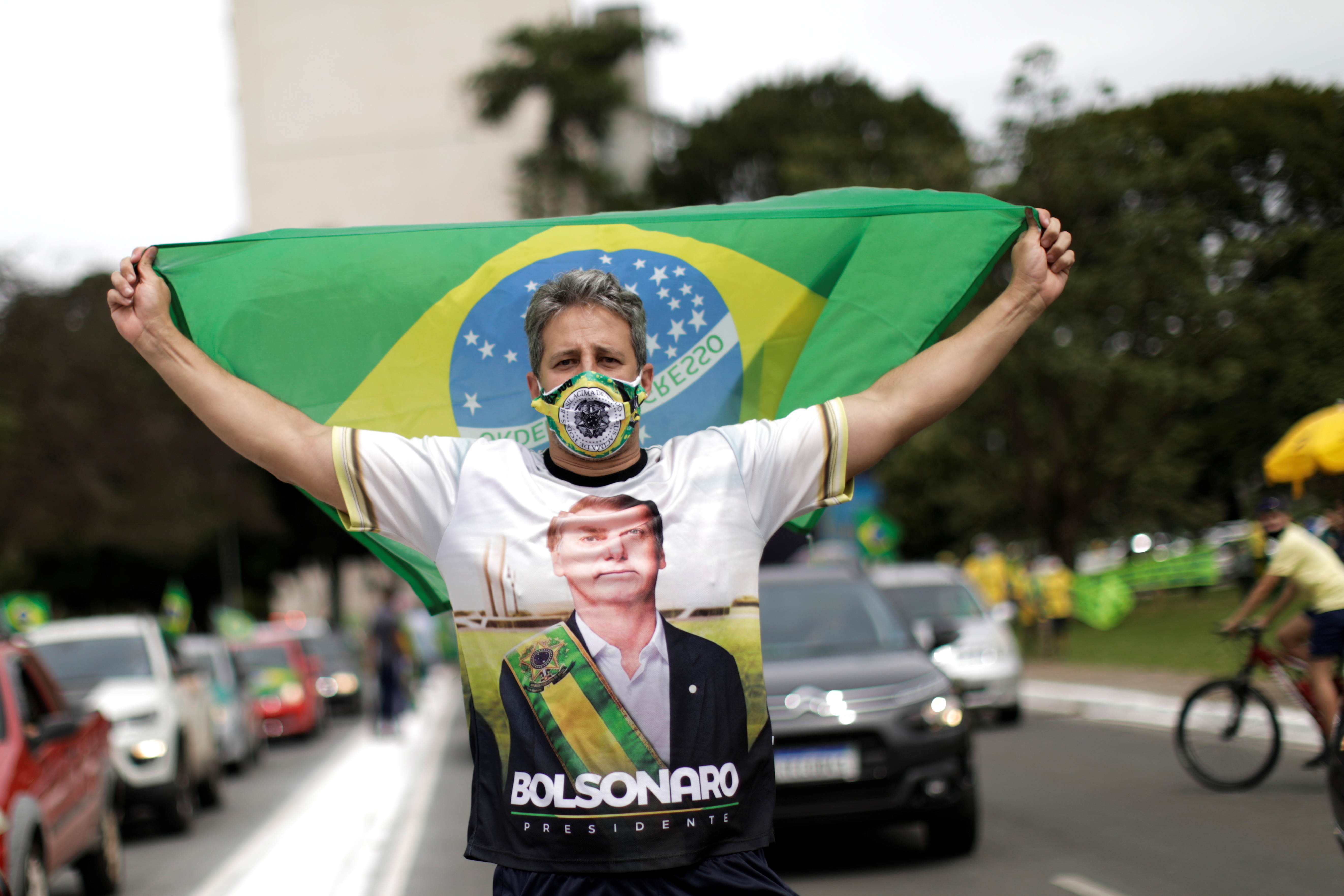 Protesters gathered in Sao Paulo, Rio de Janeiro, and the capital, Brasilia, where thousands assembled on the Esplanade of Ministries as Bolsonaro briefly passed overhead in a helicopter.