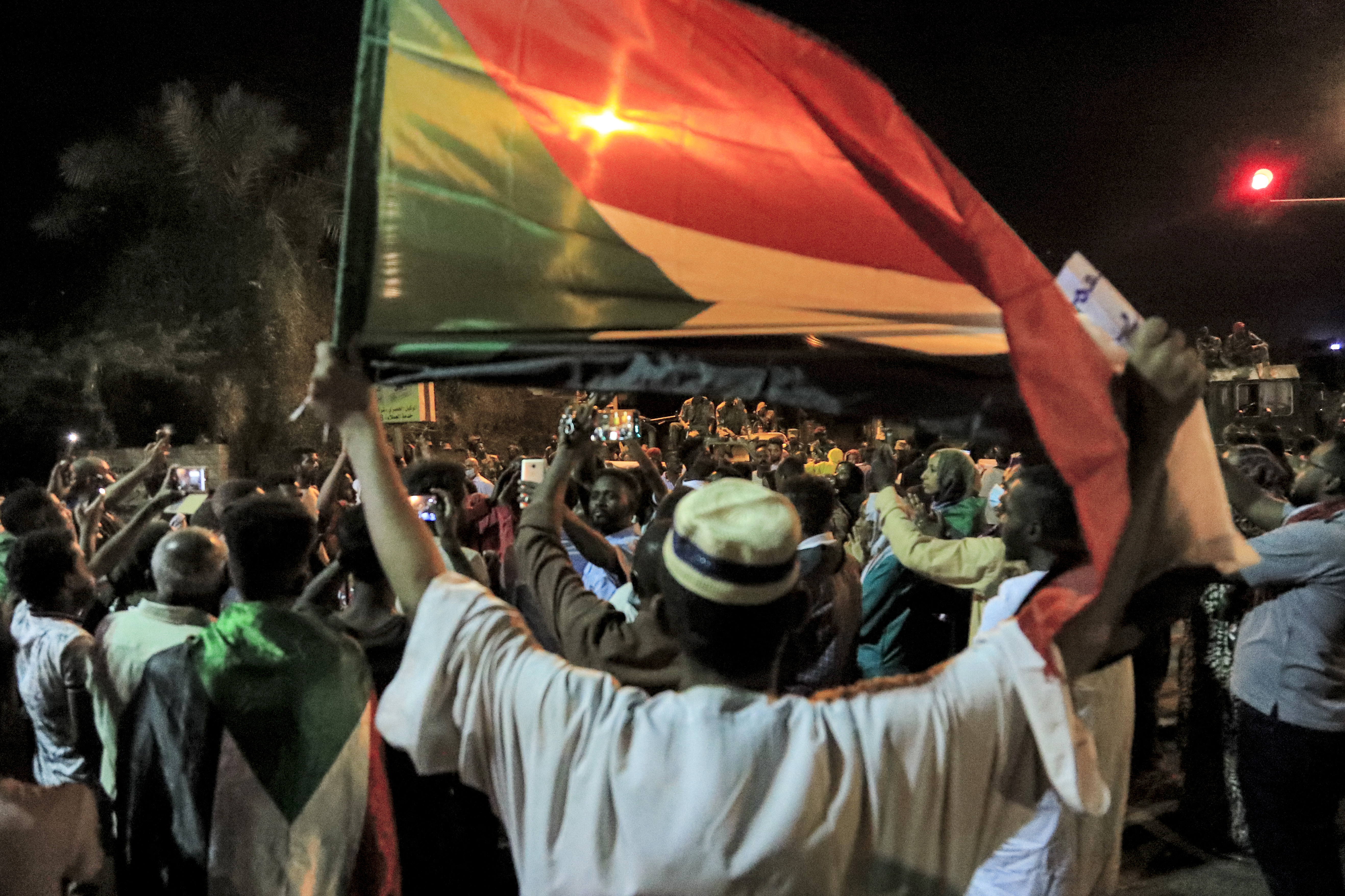 “Retribution for the martyrs,” many chanted, as they waved Sudanese flags.