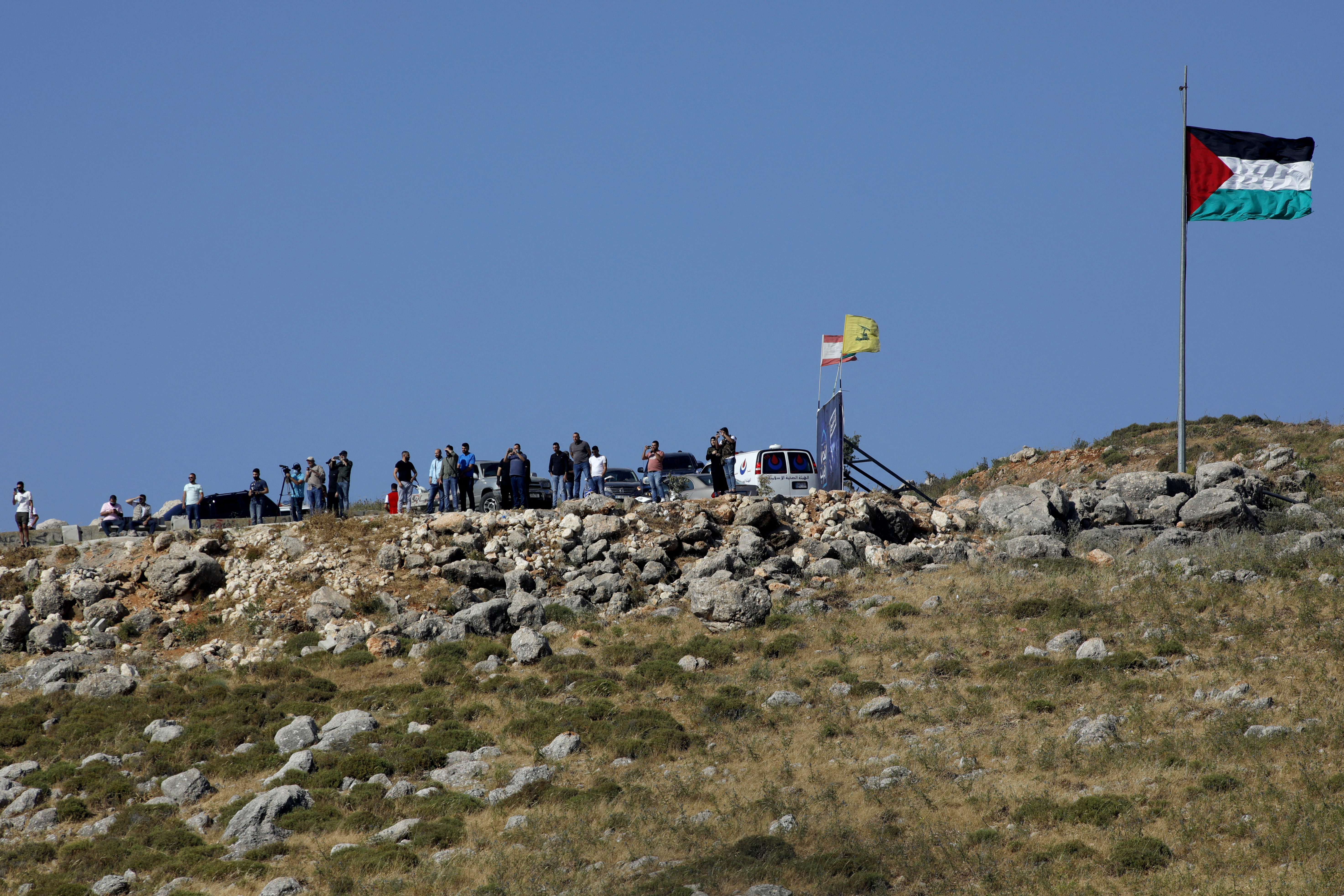 The Lebanese protesters had gathered close to the fence, waving flags, including the Palestinian national flag and the flag of Lebanon’s Iran-backed Hezbollah movement, a staunch opponent of Israel.