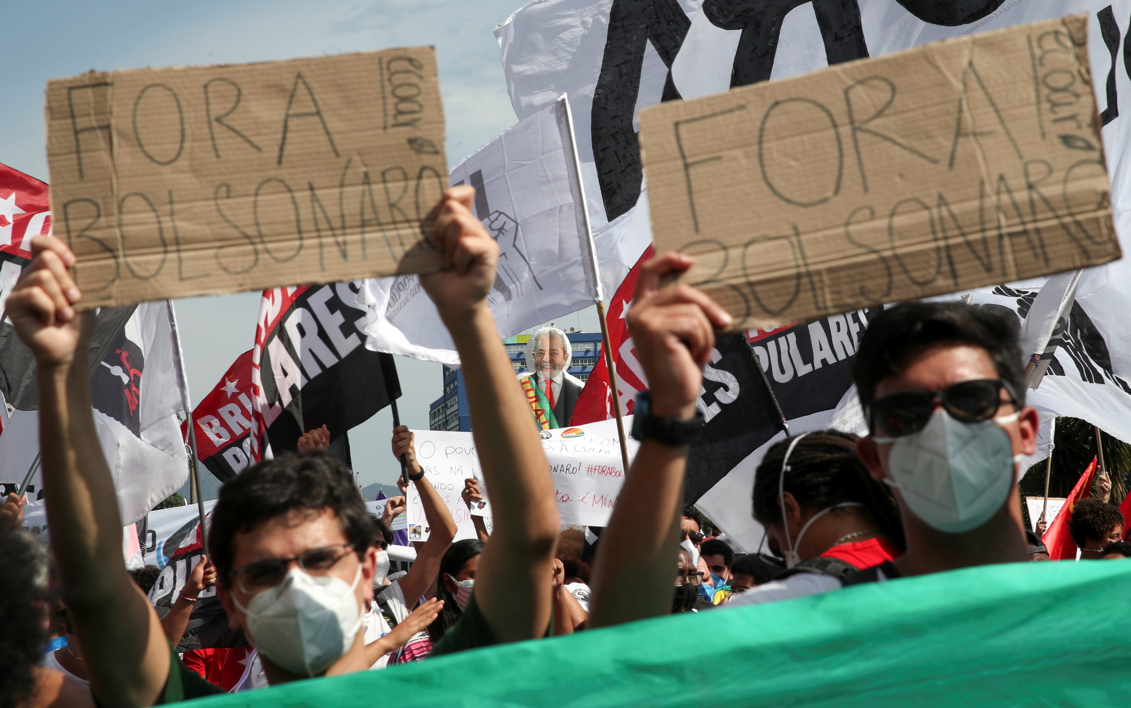 Holding signs reading “Bolsonaro out” and “Impeachment now”, protesters rallied in at least 16 Brazilian cities and towns on Saturday to demand his resignation, including Salvador, Belo Horizonte, and the capital, Brasilia.
