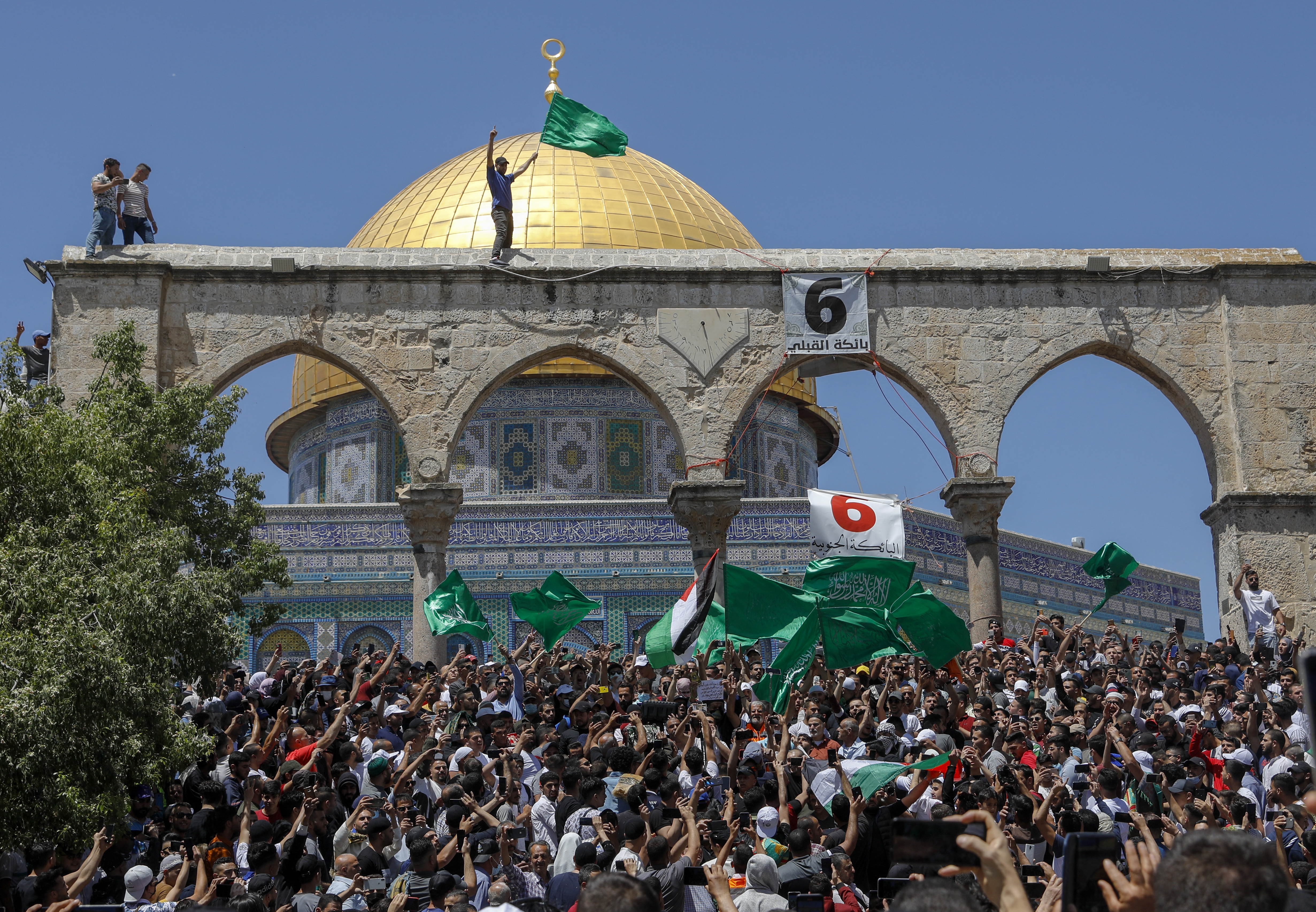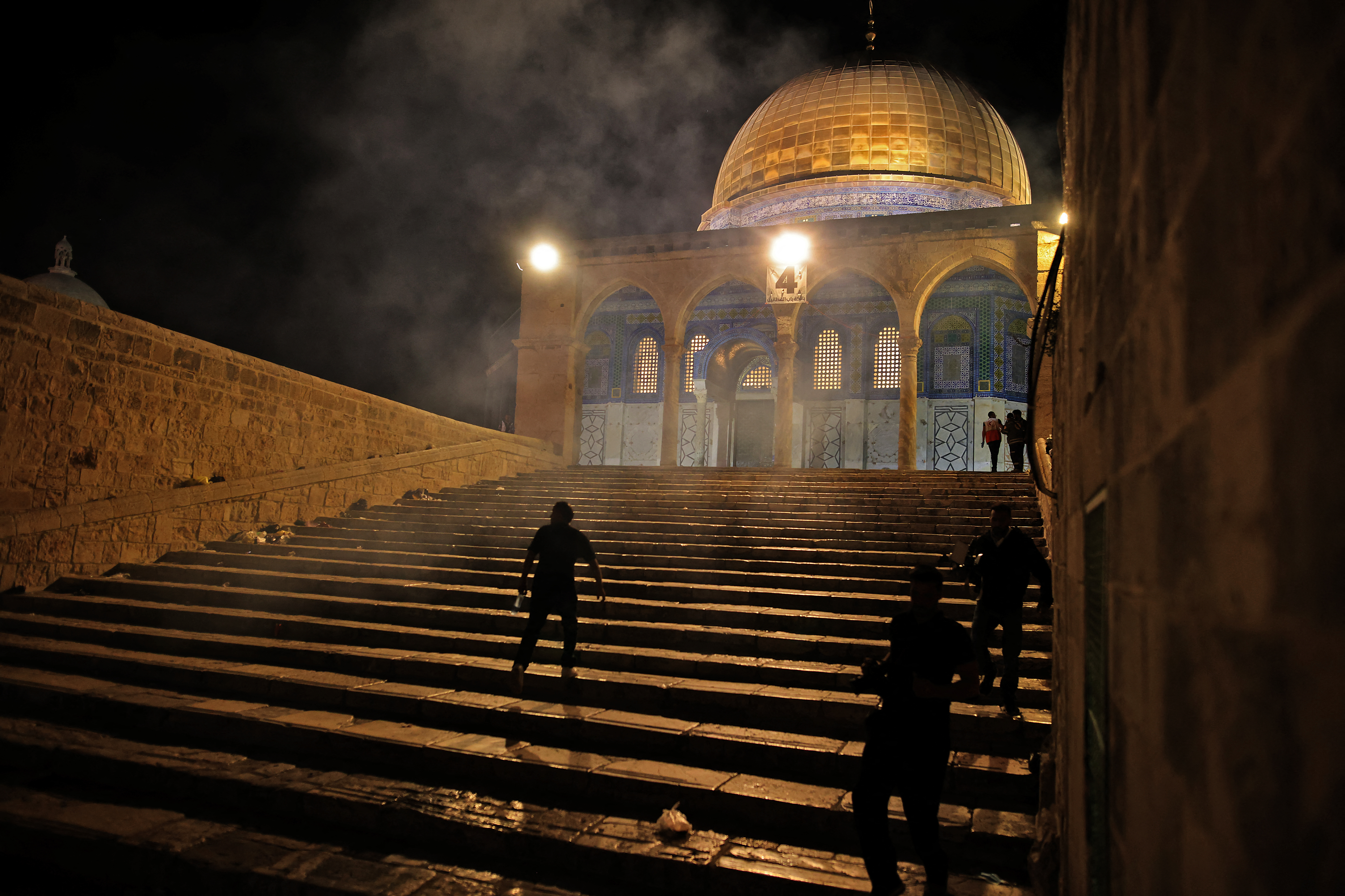Tens of thousands of Palestinian worshippers had earlier packed into the mosque on the final Friday of Ramadan and many stayed on to protest in support of Palestinians facing eviction from their homes on Israeli-occupied land claimed by Jewish settlers.